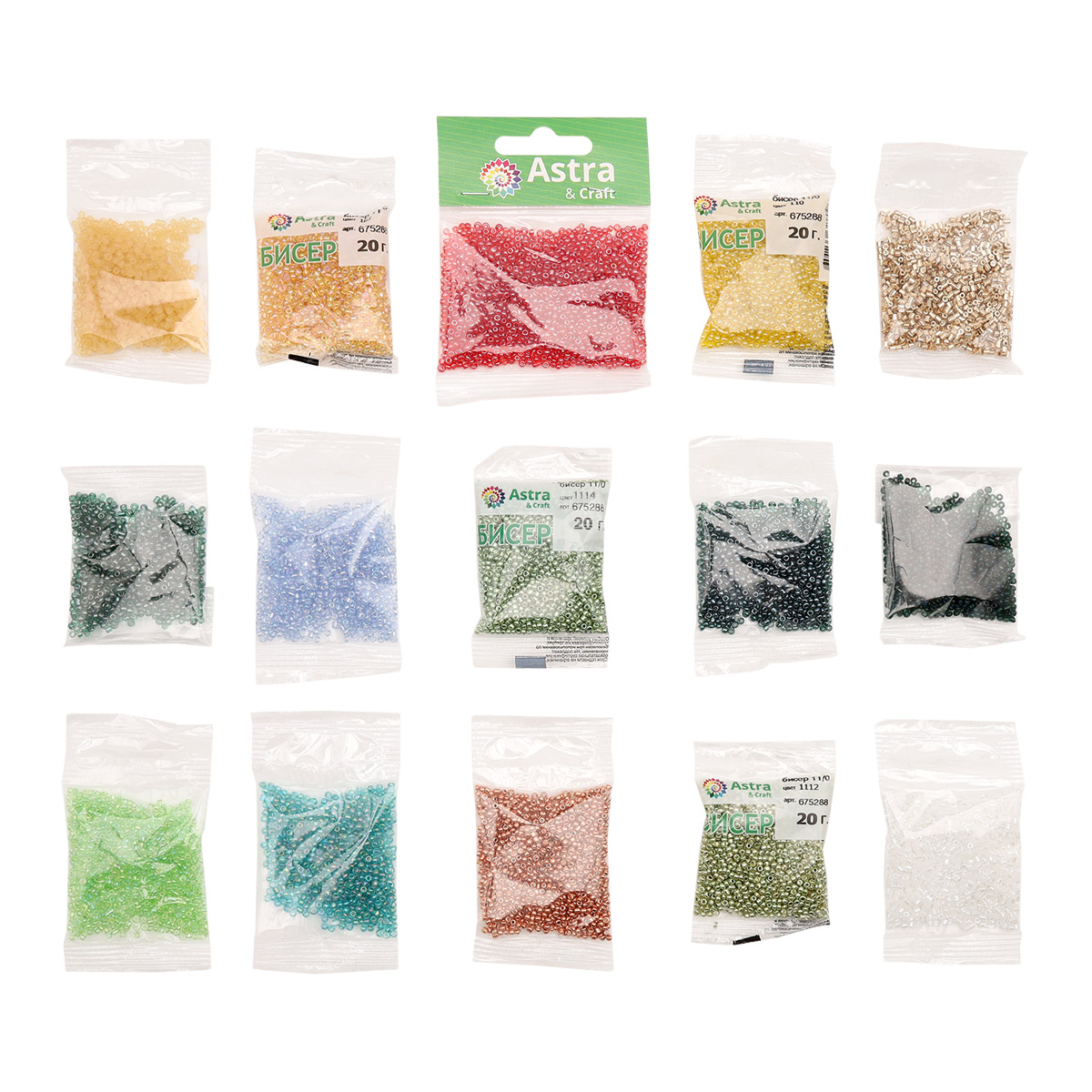 Набор №3 бисера, рубки 15 цв. 200 гр (10 цв. по 10 гр + 5 цв. по 20 гр), Astra&Craft