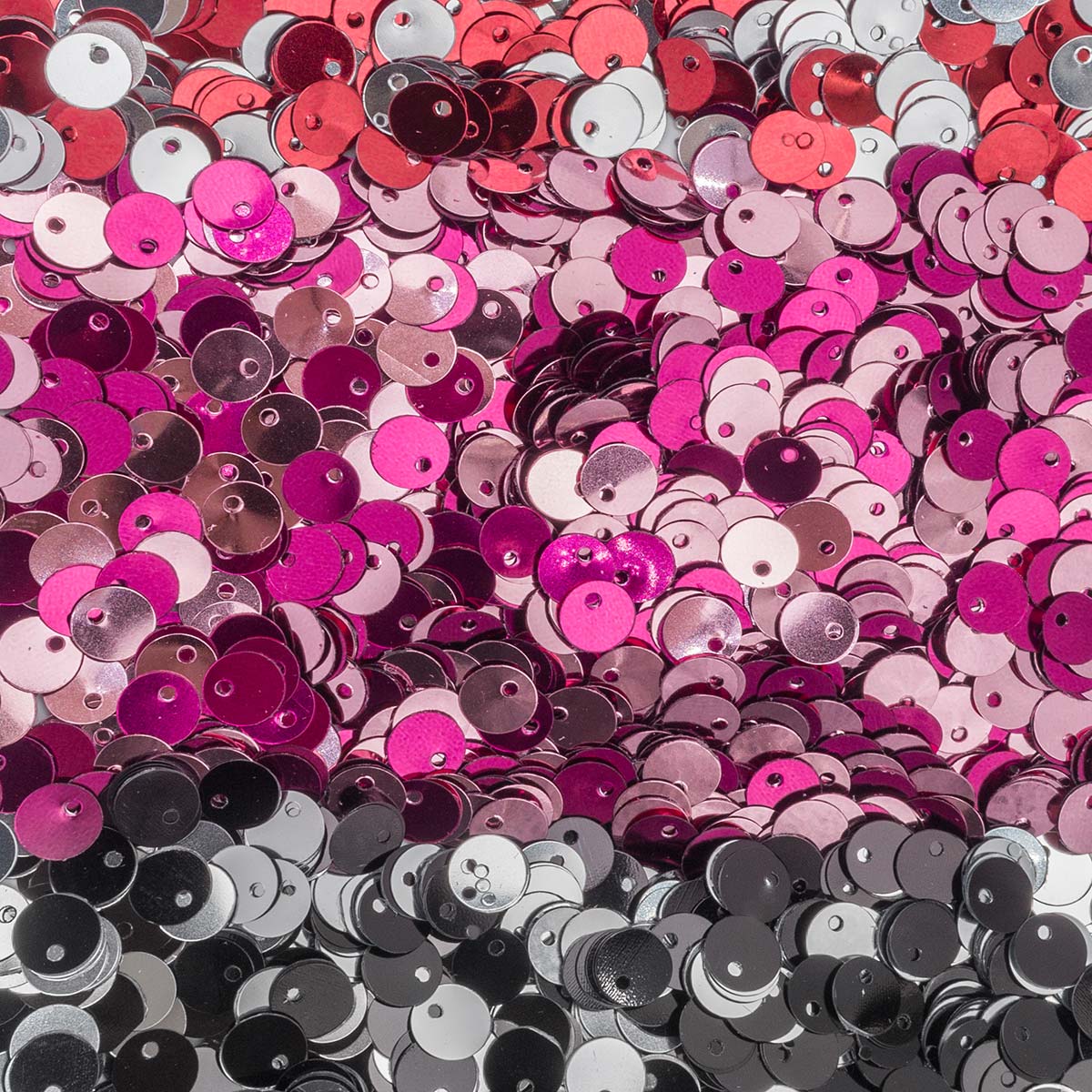 Отверстие для пришивания этих пайеток расположено ближе к краю: это позволяет спрятать участок с нитью под слоем других аналогичных пайеток и придать готовому изделию более аккуратный вид. Расшитая этими элементами ткань легко меняет цвет: достаточно провести по ней рукой, чтобы пайетки перевернулись. Пайетки достаточно жесткие, поэтому дольше вам прослужат и не будут осыпаться.
