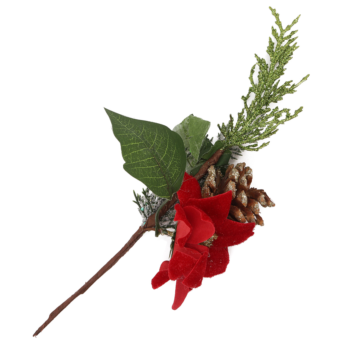 XY19-298 Ветка сосноваяс ягодами и цветами пуансеттии, 32см