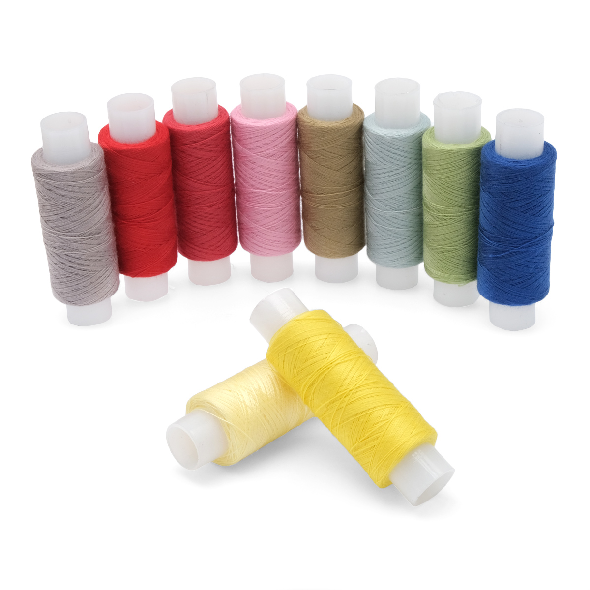 Набор швейных ниток №50/2 от Astra&Craft – прекрасный вариант для шитья и ремонта в домашних условиях. Нитки ассорти №62 подходят для легких тканей и тканей среднего веса. Позволяют выполнять соединительные швы или декоративную отстрочку. Подходят также для обметки краев ткани. В наборе 10 разноцветных бобины с длиной нити 200 м – такая длина оптимальна для бытовых швейных машин.
