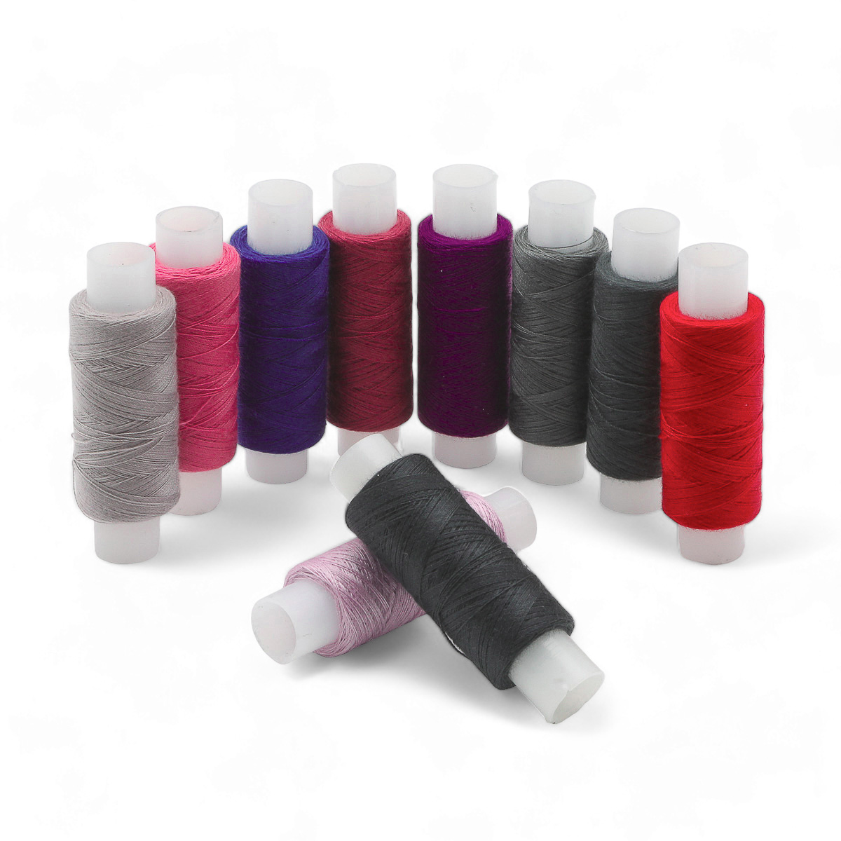 Набор швейных ниток №50/2 от Astra&Craft – прекрасный вариант для шитья и ремонта в домашних условиях. Нитки ассорти №73 подходят для легких тканей и тканей среднего веса. Позволяют выполнять соединительные швы или декоративную отстрочку. Подходят также для обметки краев ткани. В наборе 10 разноцветных бобины с длиной нити 200 м – такая длина оптимальна для бытовых швейных машин.