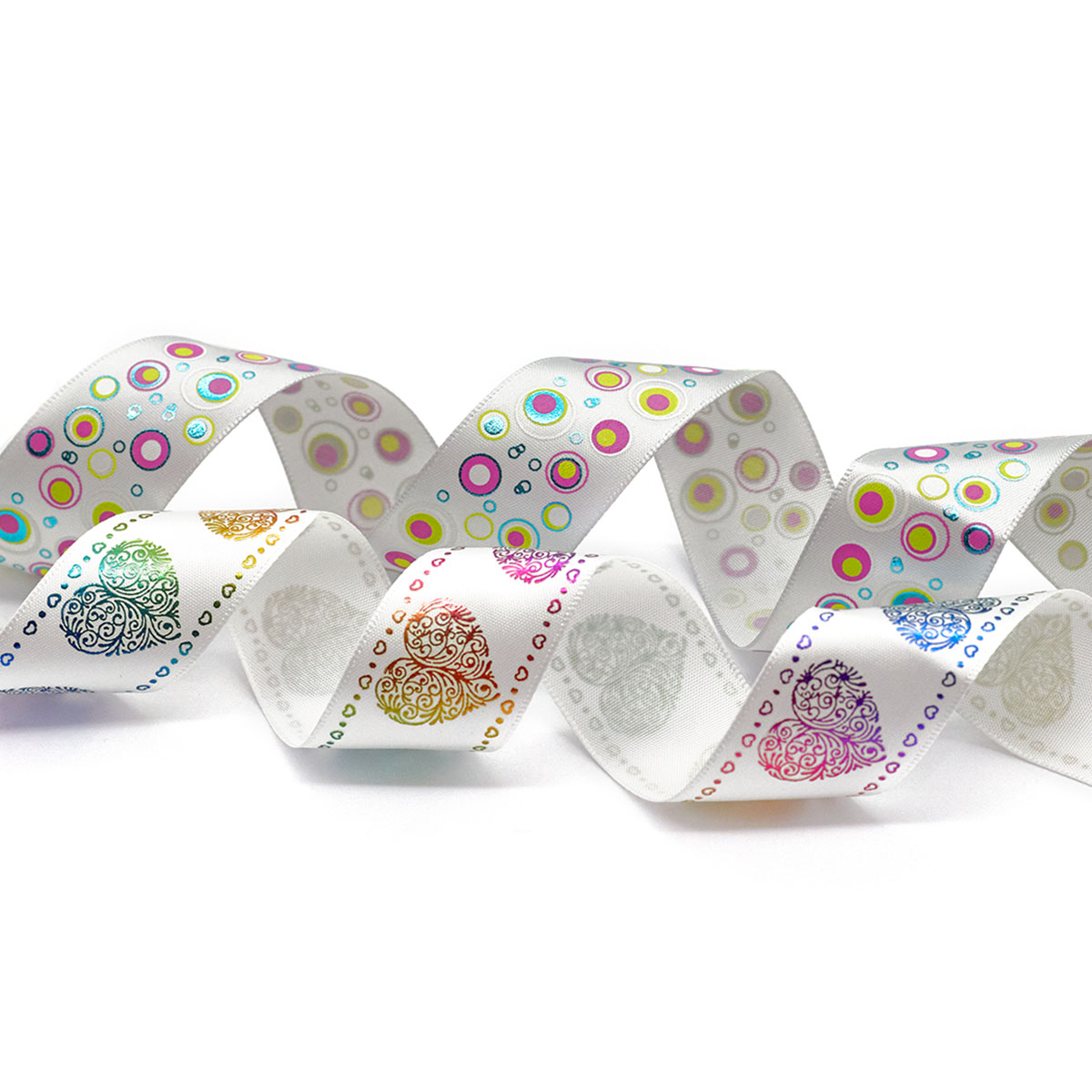В наборе: ленты атласные с рисунком, ширина 25 мм (2 шт.), ширина 22 мм (1 шт.); лента репсовая с рисунком, ширина 20 мм (1 шт.). Длина каждой ленты – 1 м. Всего 4 шт. Цвета: белый, серый.
