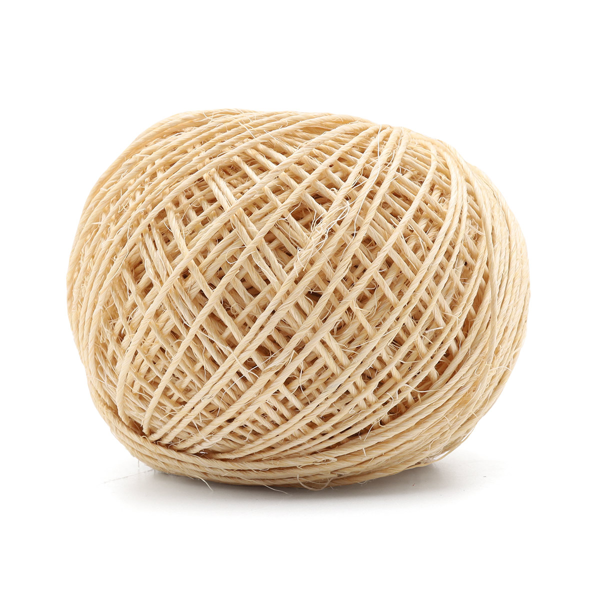 Шпагат изготовлен из волокна сизаль, которое получают из листьев растения агавы сизаля. Это волокно устойчиво к влаге и солнечному излучению, поэтому подходит для использования на открытом воздухе.