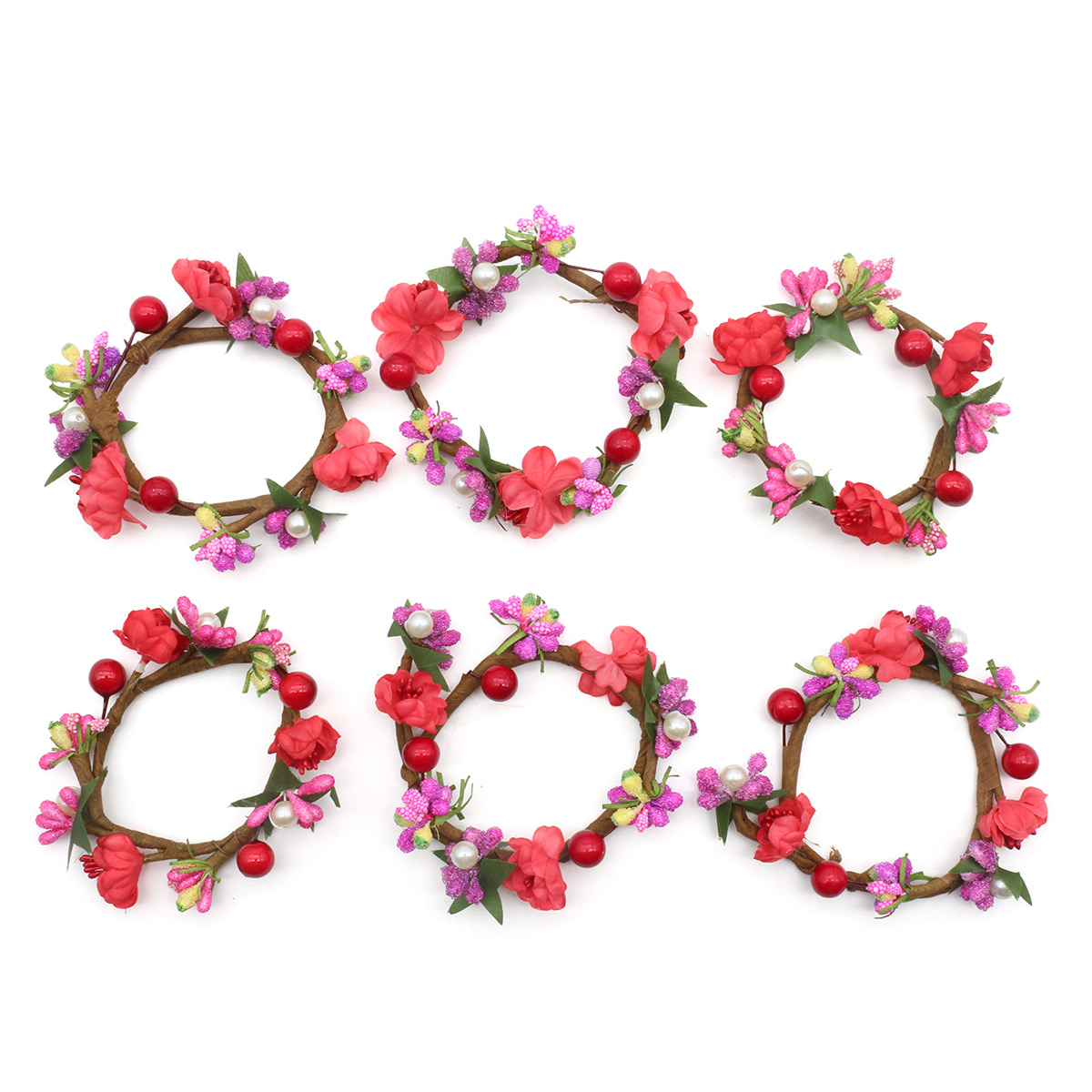 В наборе: венок декоративный Цветы и жемчуг, цвет красный, размер 7,5х2,5 см, 6 штук.