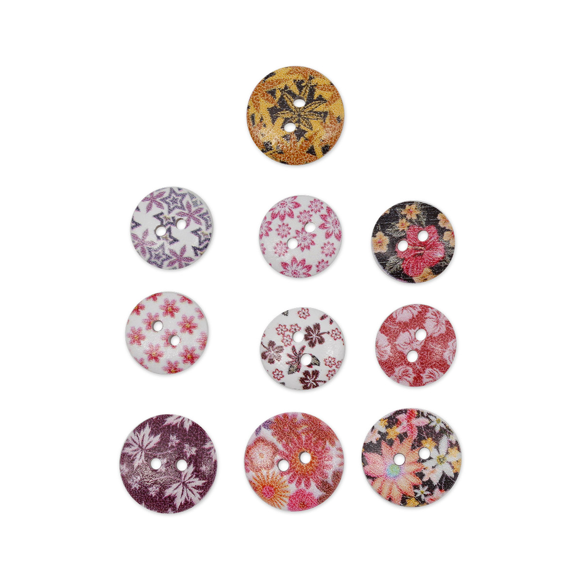 Набор пуговиц 'Цветочки-лепесточки' создан для любителей мастерить оригинальные поделки из подручных материалов. Россыпь деревянных лакированных пуговиц 'на прокол' с нанесенным рисунком – основа для ваших творческих проектов.