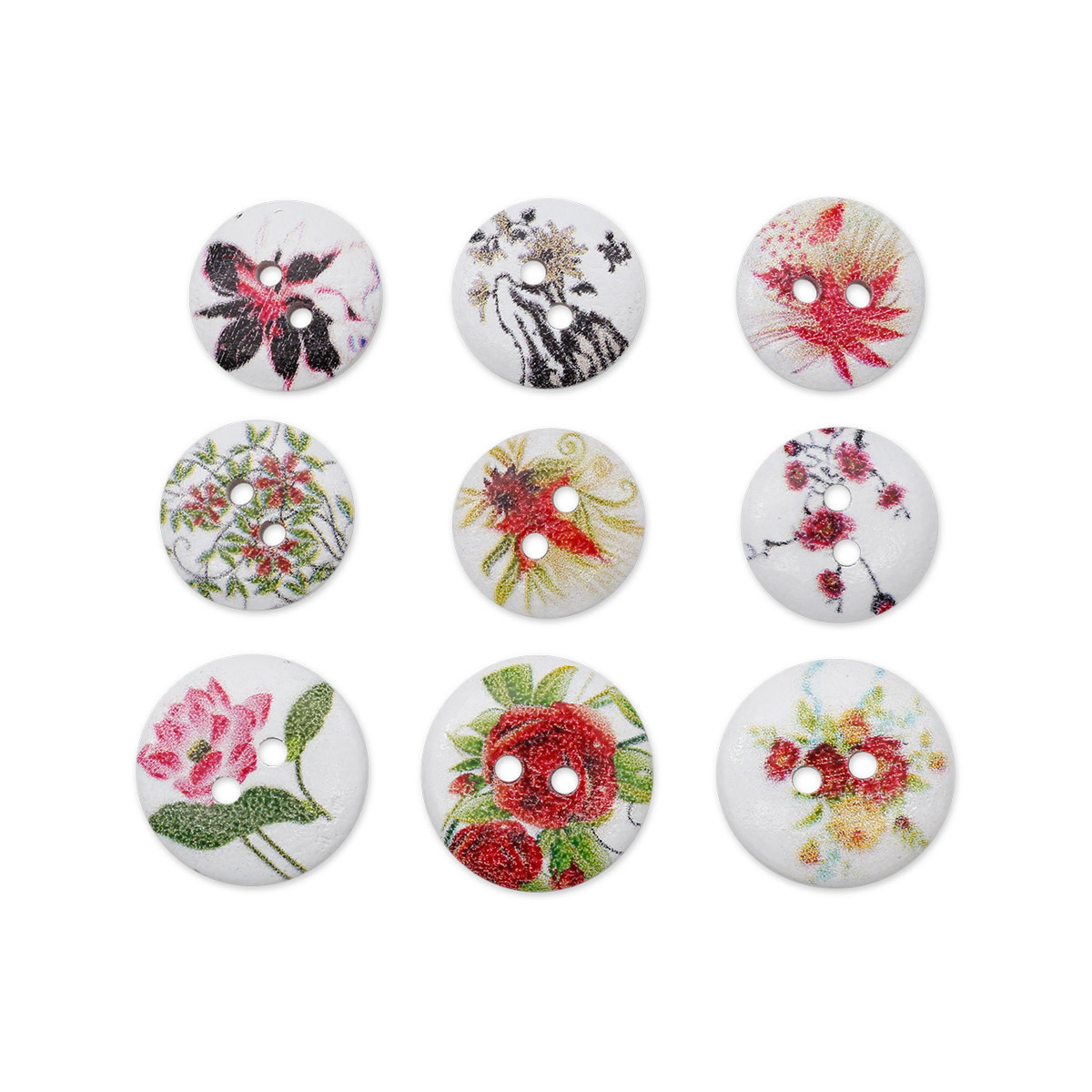 Набор пуговиц 'Цветы' создан для любителей мастерить оригинальные поделки из подручных материалов. Россыпь деревянных лакированных пуговиц 'на прокол' с нанесенным рисунком – основа для ваших творческих проектов.