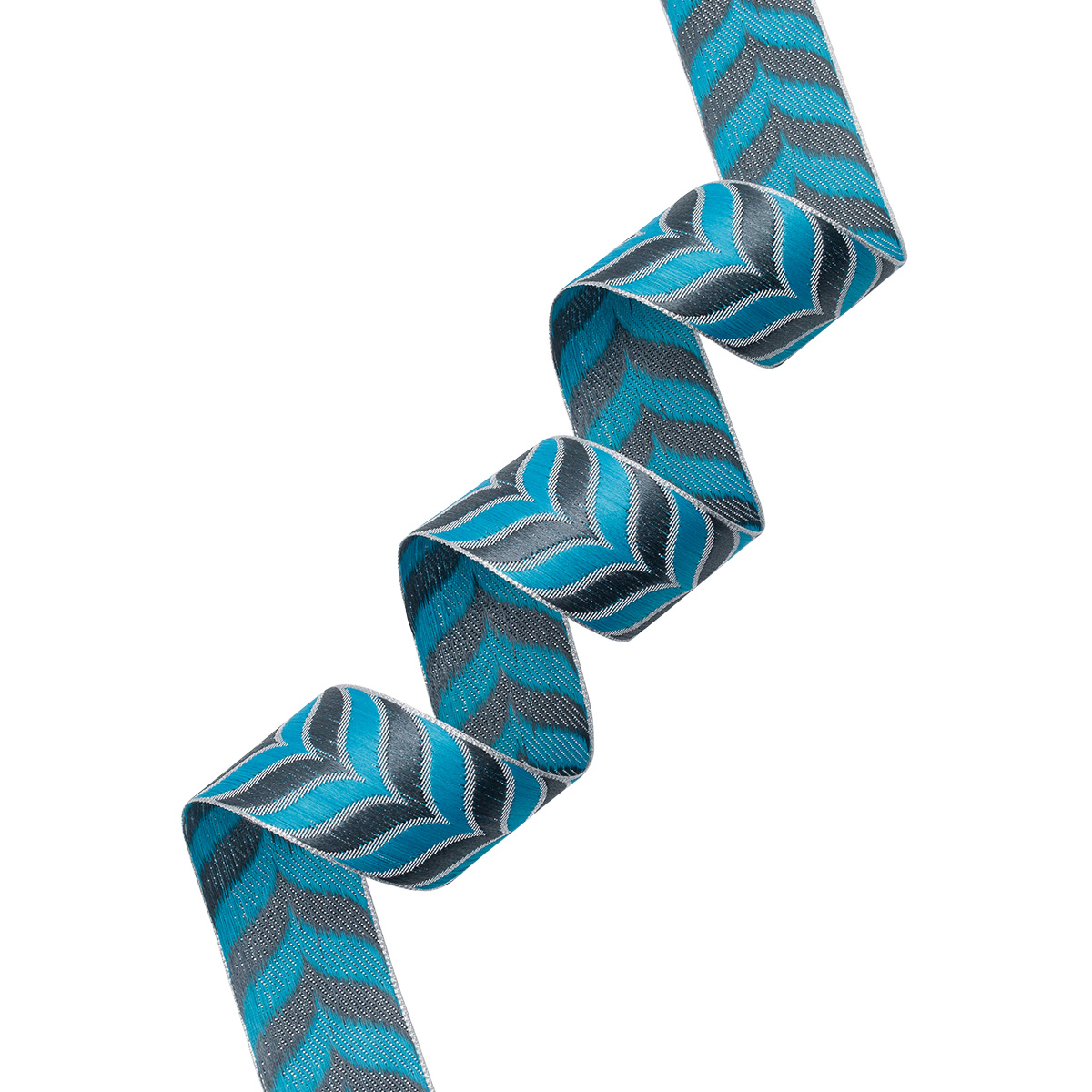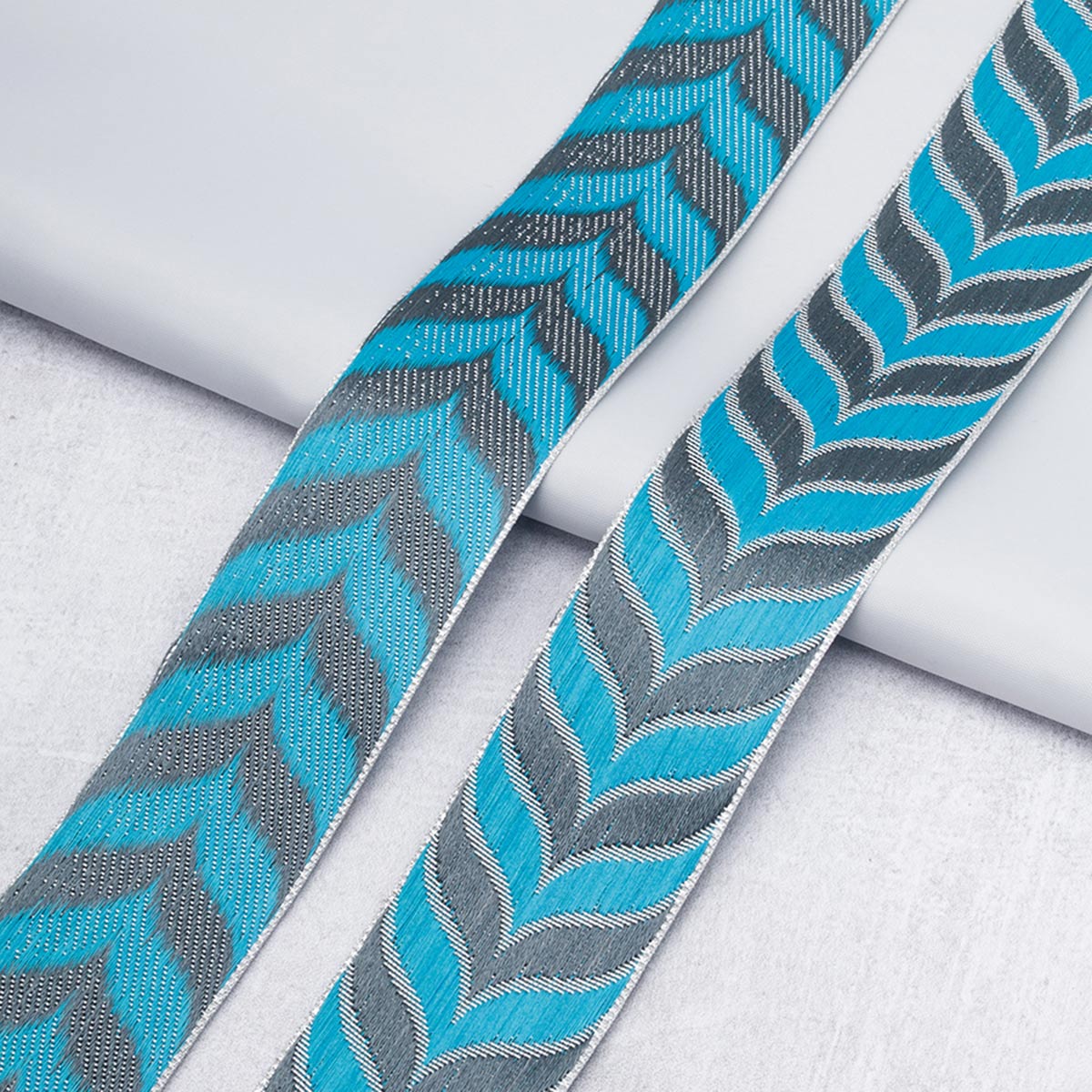 Жаккардовая лента-тесьма имеет объемный плетеный узор, напоминающий вышивку. Поскольку рисунок образуется переплетением нитей, а не наносится на готовую ткань, он никогда не поблекнет и не сотрется.