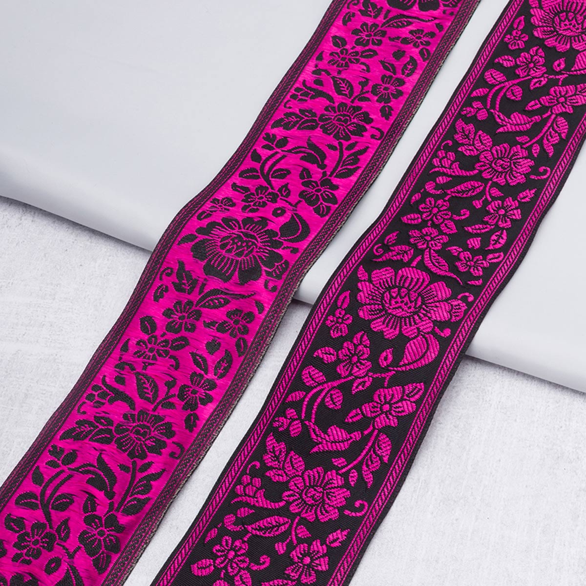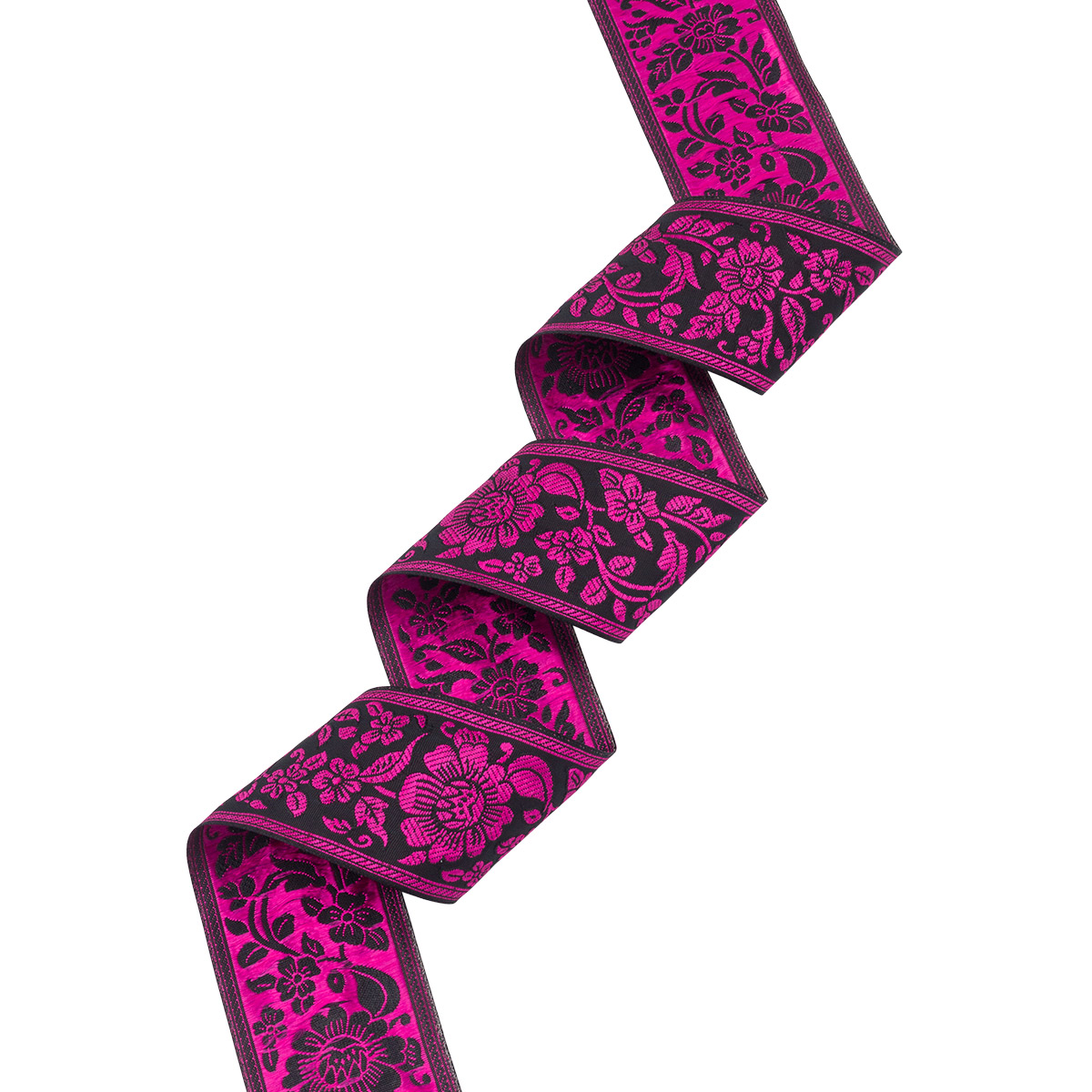 Жаккардовая лента-тесьма имеет объемный плетеный узор, напоминающий вышивку. Поскольку рисунок образуется переплетением нитей, а не наносится на готовую ткань, он никогда не поблекнет и не сотрется.