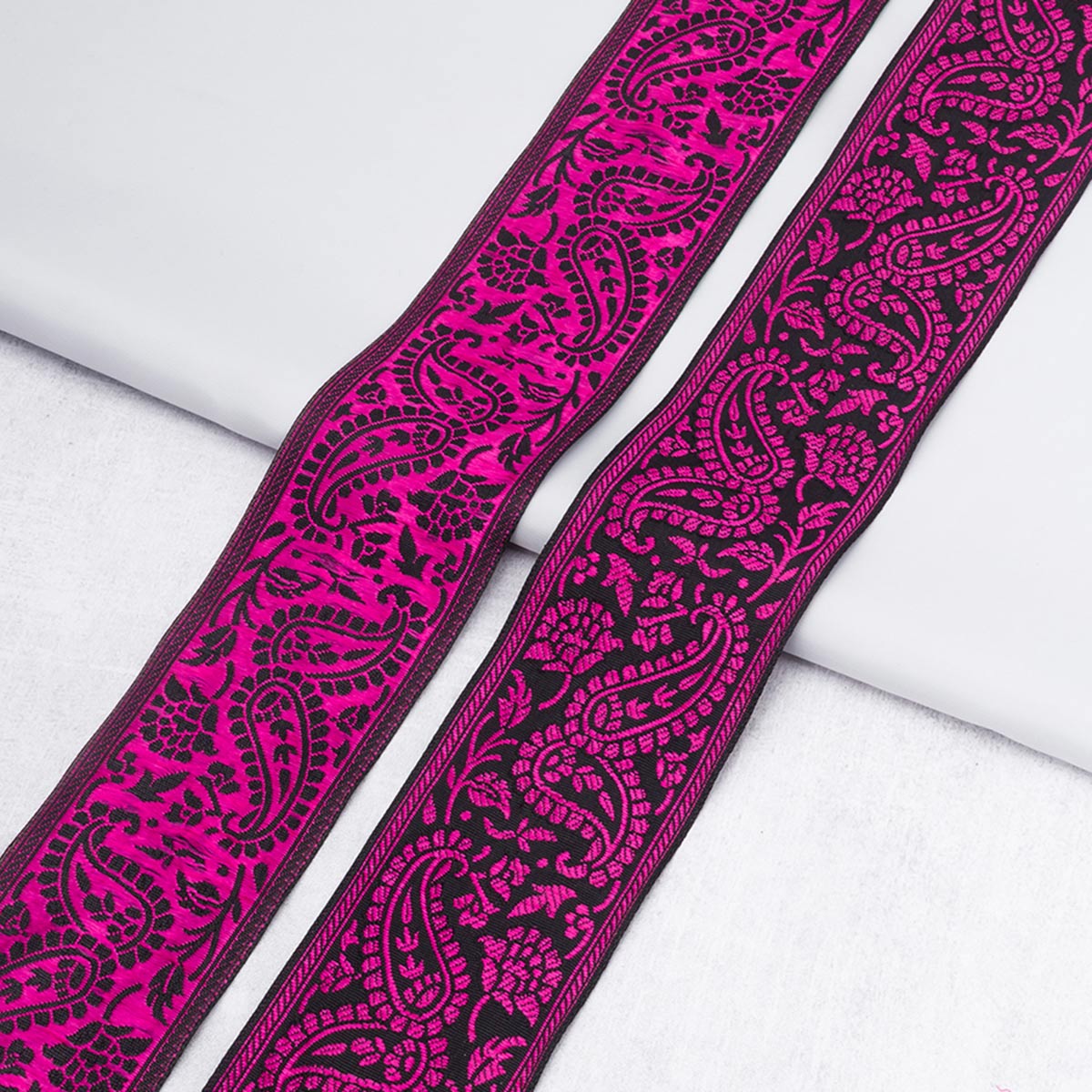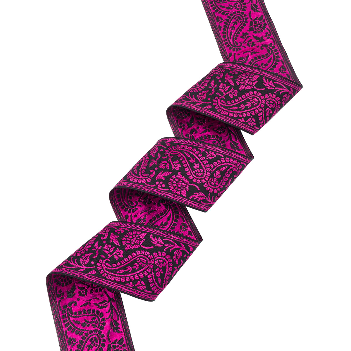 Жаккардовая лента-тесьма имеет объемный плетеный узор, напоминающий вышивку. Поскольку рисунок образуется переплетением нитей, а не наносится на готовую ткань, он никогда не поблекнет и не сотрется.
