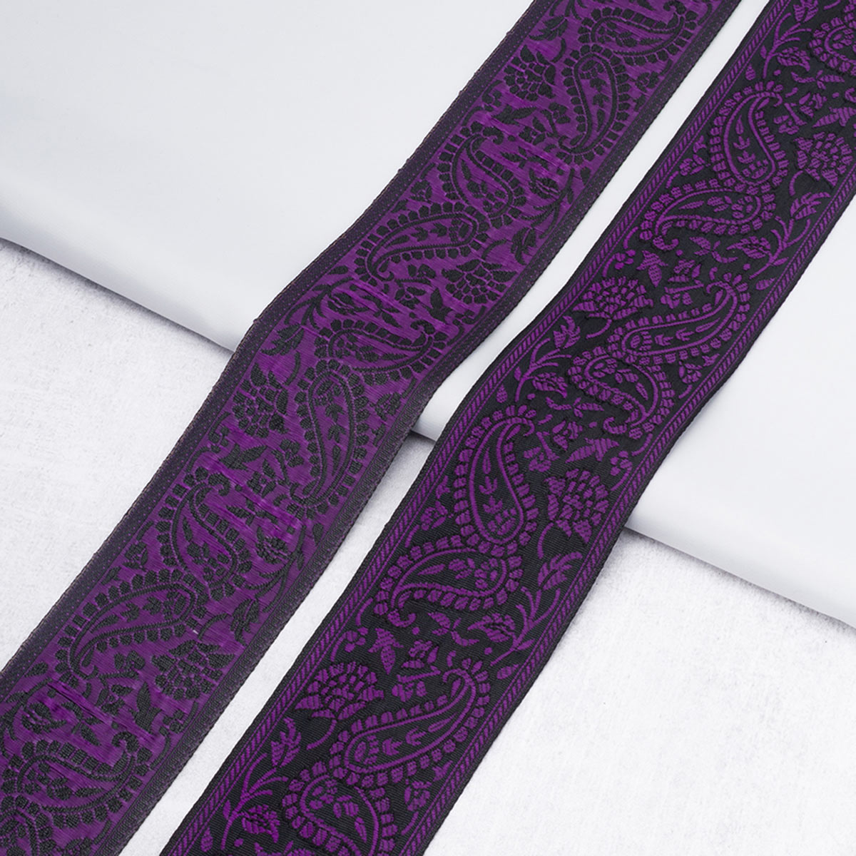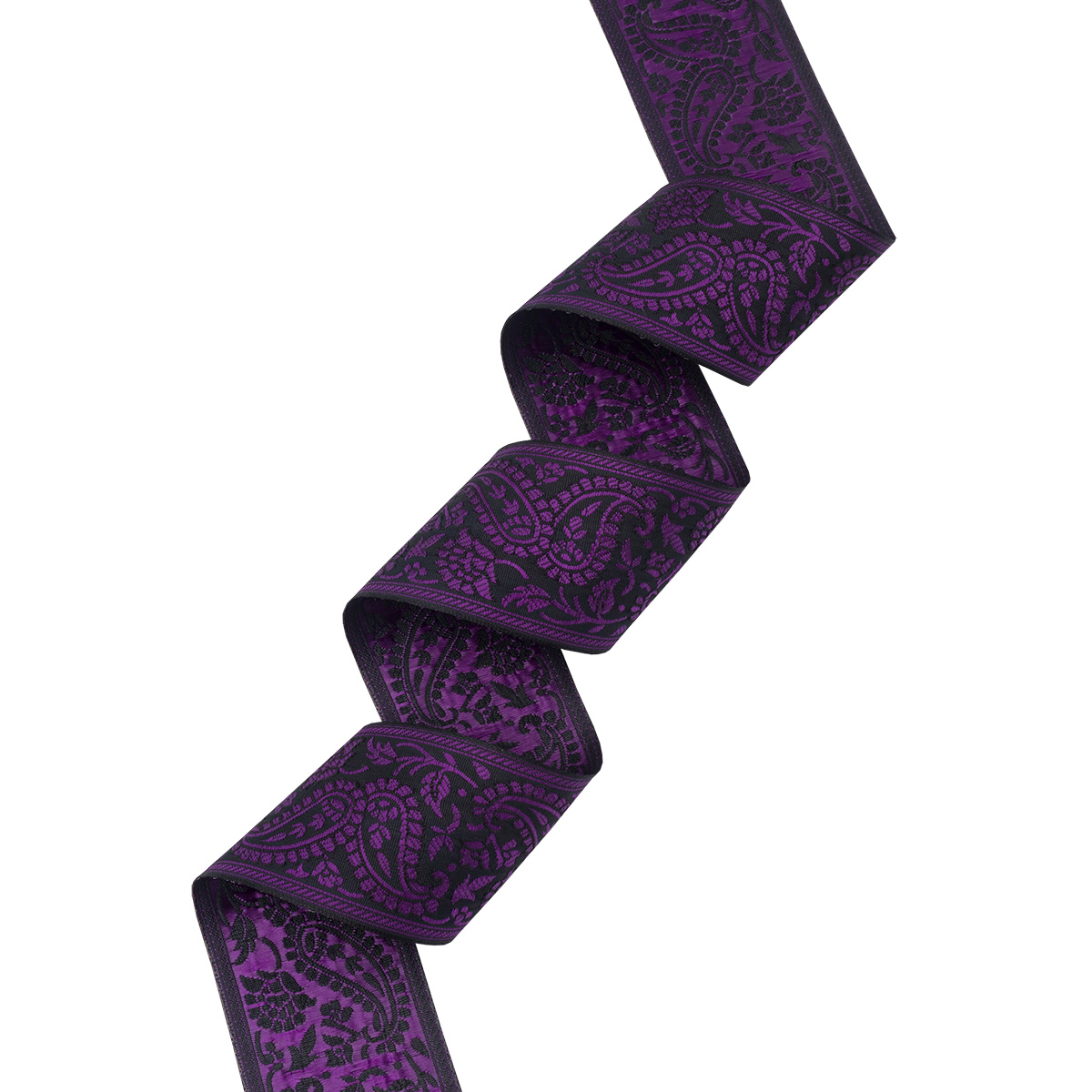 Жаккардовая лента-тесьма имеет объемный плетеный узор, напоминающий вышивку. Поскольку рисунок образуется переплетением нитей, а не наносится на готовую ткань, он никогда не поблекнет и не сотрется.
