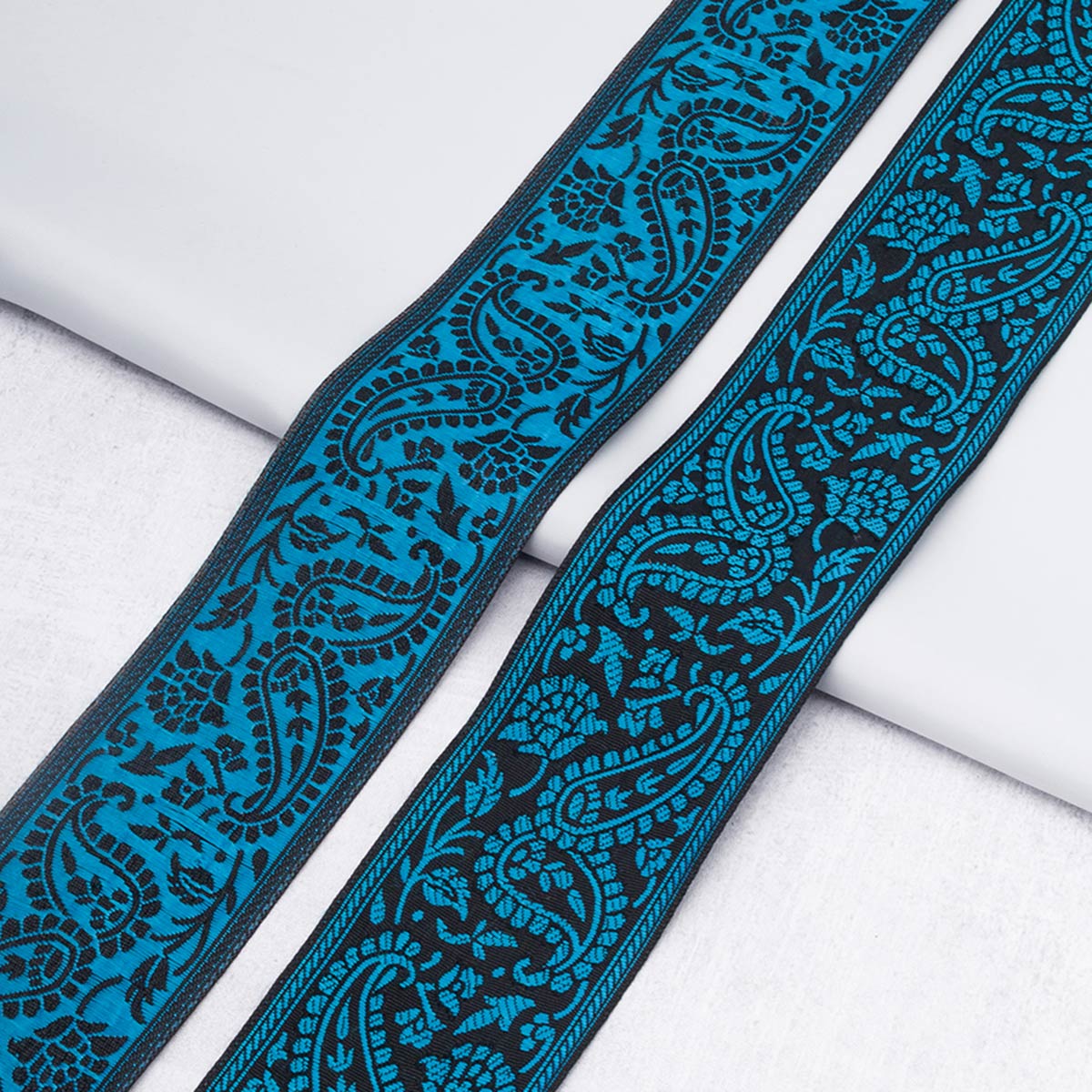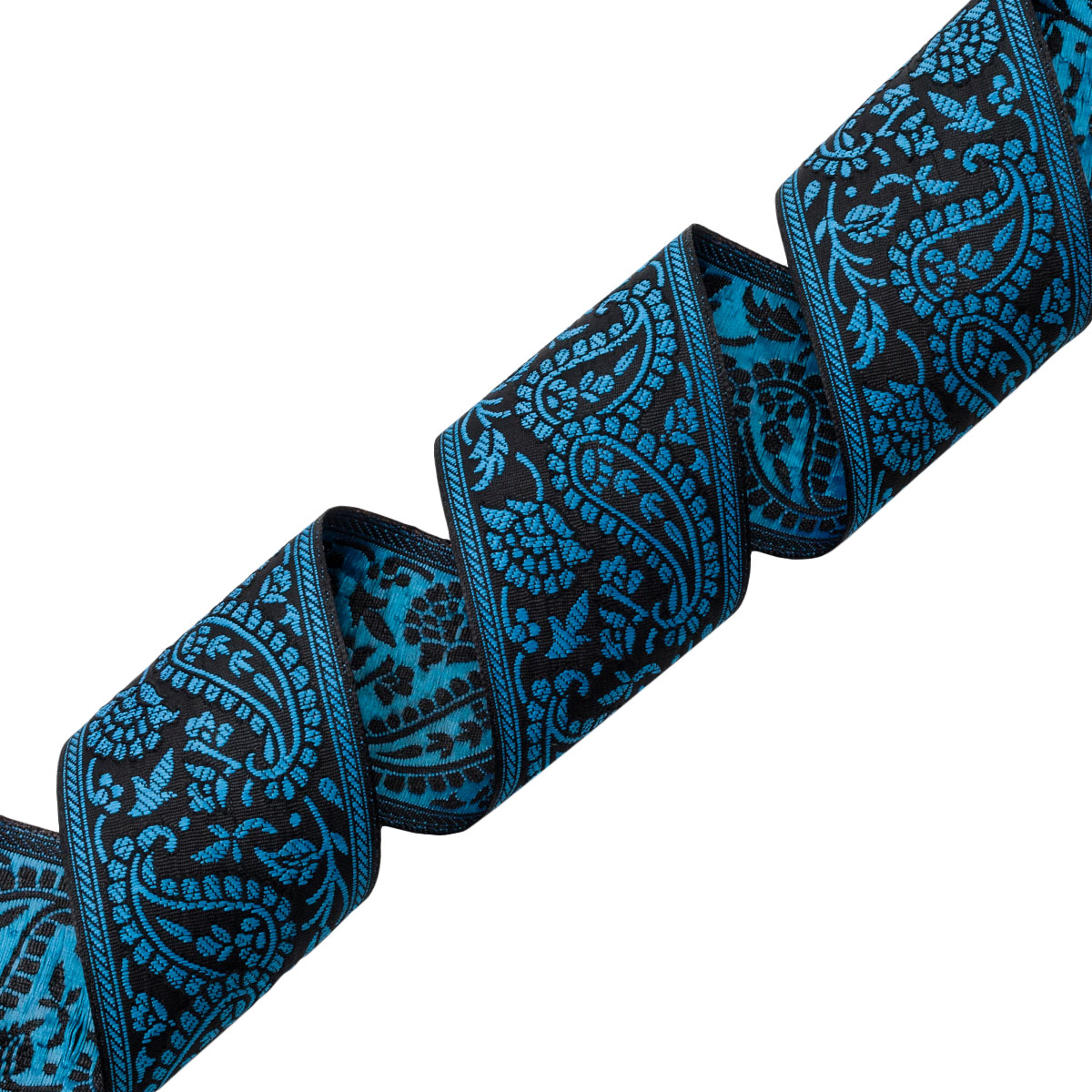 Жаккардовая лента-тесьма имеет объемный плетеный узор, напоминающий вышивку. Поскольку рисунок образуется переплетением нитей, а не наносится на готовую ткань, он никогда не поблекнет и не сотрется.