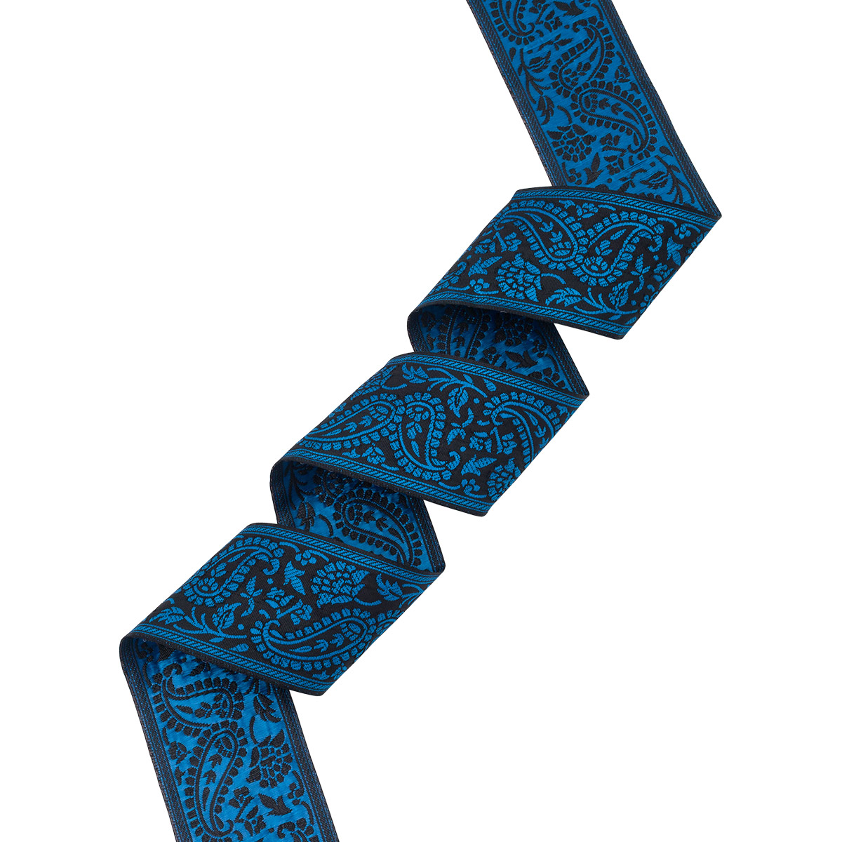 Жаккардовая лента-тесьма имеет объемный плетеный узор, напоминающий вышивку. Поскольку рисунок образуется переплетением нитей, а не наносится на готовую ткань, он никогда не поблекнет и не сотрется.