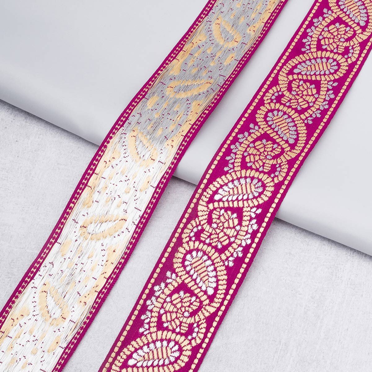 Жаккардовая лента-тесьма имеет объемный плетеный узор, напоминающий вышивку. Поскольку рисунок образуется переплетением нитей, а не наносится на готовую ткань, он никогда не поблекнет и не сотрется.
