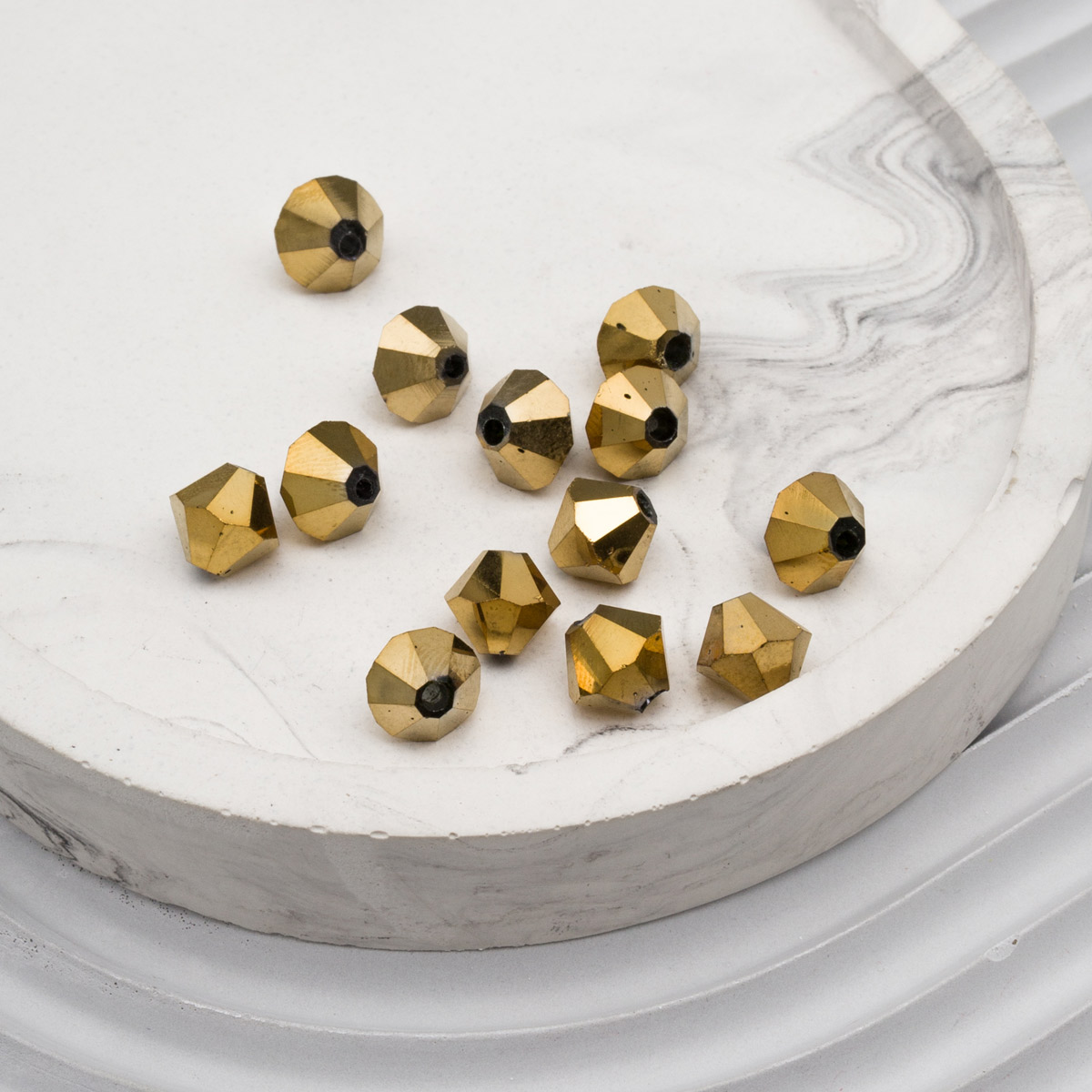 Граненые бусины из цветного стекла с гальваникой – качественная основа для украшений. Огранка 'биконус' подчеркивает блеск стекла, а гальваническая обработка создает необычный зеркальный эффект с цветными бликами. Украшения из таких бусин подчеркнут ваш образ и не останутся без внимания.