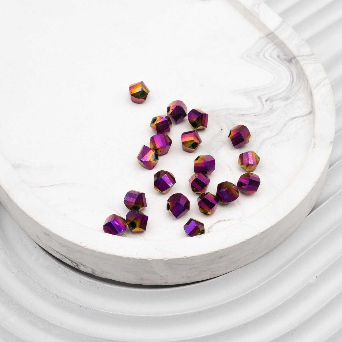 Граненые бусины из цветного стекла с гальваникой – качественная основа для украшений. Спиральная огранка подчеркивает блеск стекла, а гальваническая обработка создает необычный зеркальный эффект с цветными бликами. Украшения из таких бусин подчеркнут ваш образ и не останутся без внимания.