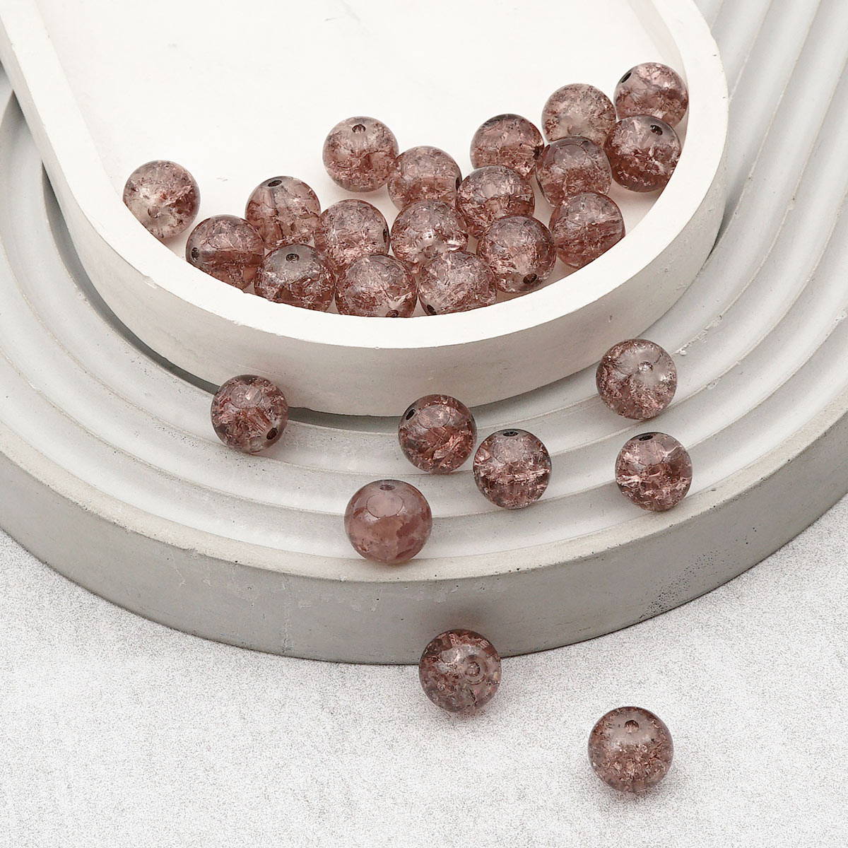 Стеклянные бусины от Astra&Craft – качественная основа для изготовления долговечных украшений ручной работы. Стекло гладкое, прохладное на ощупь, оно тяжелее пластика и устойчиво к царапинам. Благодаря эффекту кракле на просвет в бусине видны равномерные трещинки. Кракле придает бусинам особый шарм, игру света и тени внутри каждой детали. Эти трещинки не влияют на прочность бусины, но создают неповторимый визуальный эффект, напоминающий морозный узор на стекле или прожилки в натуральном камне.