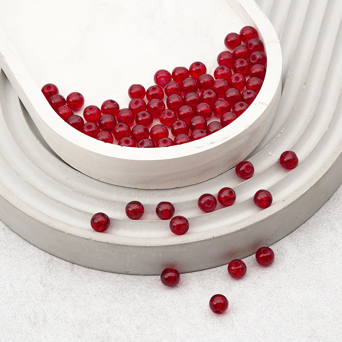 Стеклянные бусины от Astra&Craft – качественная основа для изготовления долговечных украшений ручной работы. Стекло гладкое, прохладное на ощупь, оно тяжелее пластика и устойчиво к царапинам. Благодаря эффекту кракле на просвет в бусине видны равномерные трещинки. Кракле придает бусинам особый шарм, игру света и тени внутри каждой детали. Эти трещинки не влияют на прочность бусины, но создают неповторимый визуальный эффект, напоминающий морозный узор на стекле или прожилки в натуральном камне.