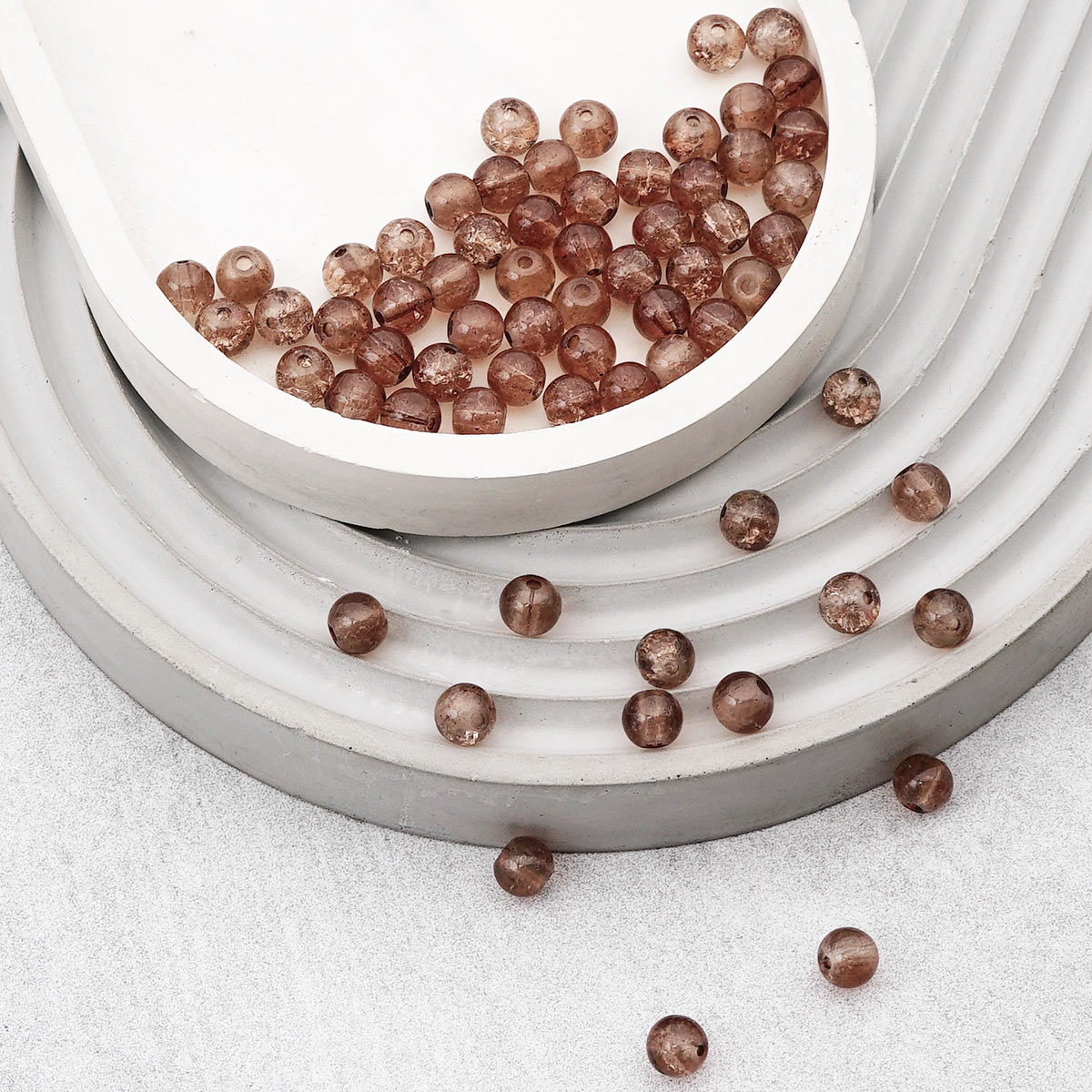 Стеклянные бусины от Astra&Craft – качественная основа для изготовления долговечных украшений ручной работы. Стекло гладкое, прохладное на ощупь, оно тяжелее пластика и устойчиво к царапинам. Благодаря эффекту кракле на просвет в бусине видны равномерные трещинки. Кракле придает бусинам особый шарм, игру света и тени внутри каждой детали. Эти трещинки не влияют на прочность бусины, но создают неповторимый визуальный эффект, напоминающий морозный узор на стекле или прожилки в натуральном камне.