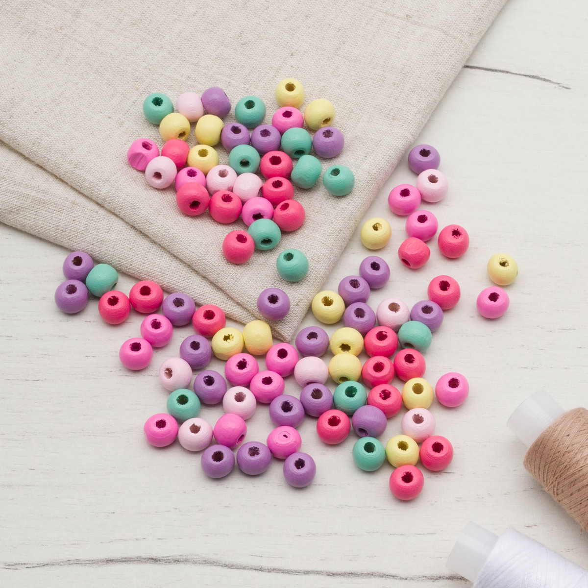 4AR396 Бусины деревянные, цветной микс, круглые, 8мм, 18гр, 100шт/упак, Astra&Craft