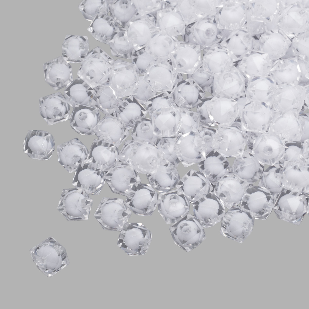 Бусины пластиковые, акрил, в цвете с белой сердцевиной, граненый куб, 8мм, 500гр, Astra&Craft