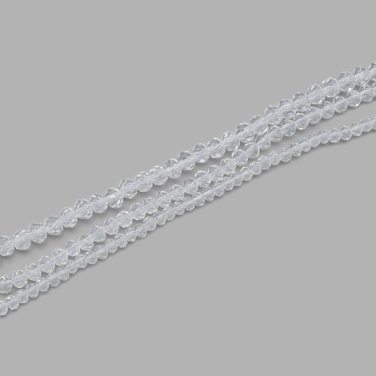 Эти изысканные стеклянные бусины-рондели, нанизанные на три нити, представляют собой воплощение роскоши и изящества. Огранка придает каждой бусине дополнительное сияние, отражая свет так, что они мерцают при каждом движении. Набор включает в себя бусины различных размеров - 2, 3 и 4 мм, что добавляет уникальности и текстуры вашим украшениям.