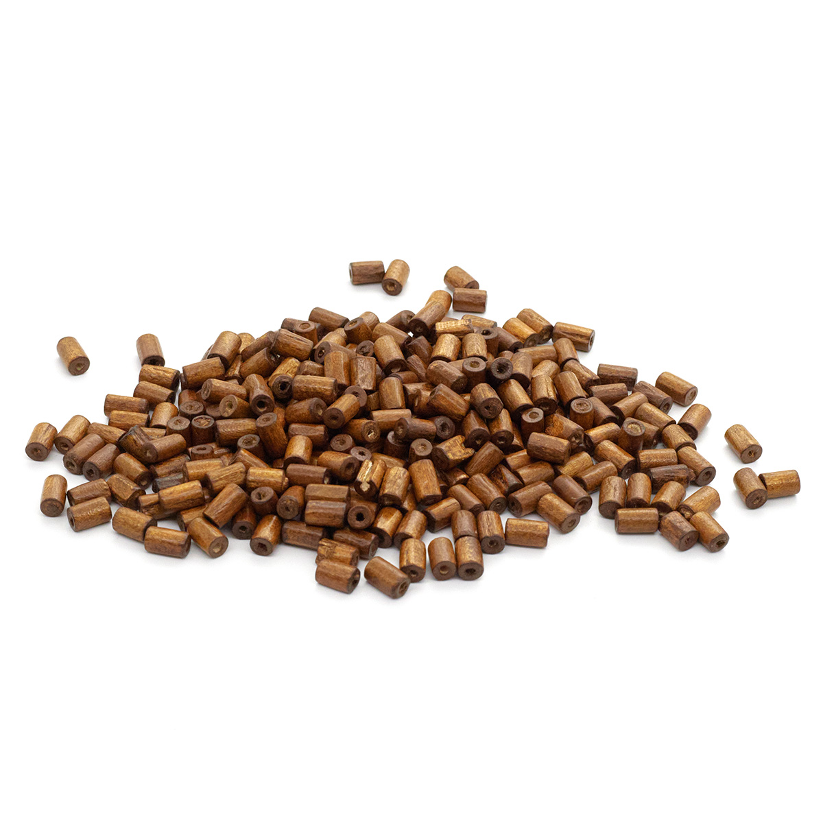 Деревянные бусины цилиндрической формы – основа для создания различных украшений – бус, браслетов. Бусины кофейного цвета удачно вписываются в такие стили, как бохо, кантри, этника и др. Такие бусины можно комбинировать с украшениями из акриловой смолы, стекла, камня.