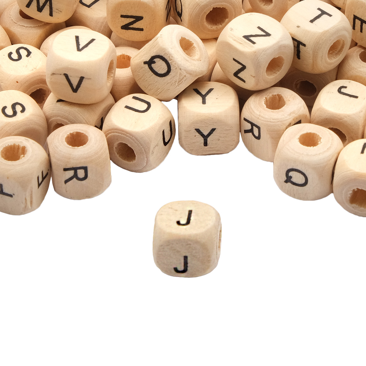Бусины деревянные, с буквами Англ. алфавит, неокрашенные, куб, 10*10мм, 50гр, 96шт/упак, Astra&Craft