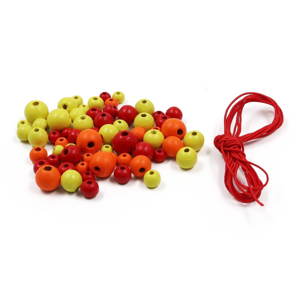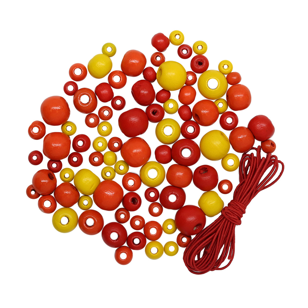 160814 Набор деревянных бусин со шнуром, красный микс, 6,8,10,12мм, 21гр, 90шт/упак, Astra&Craft