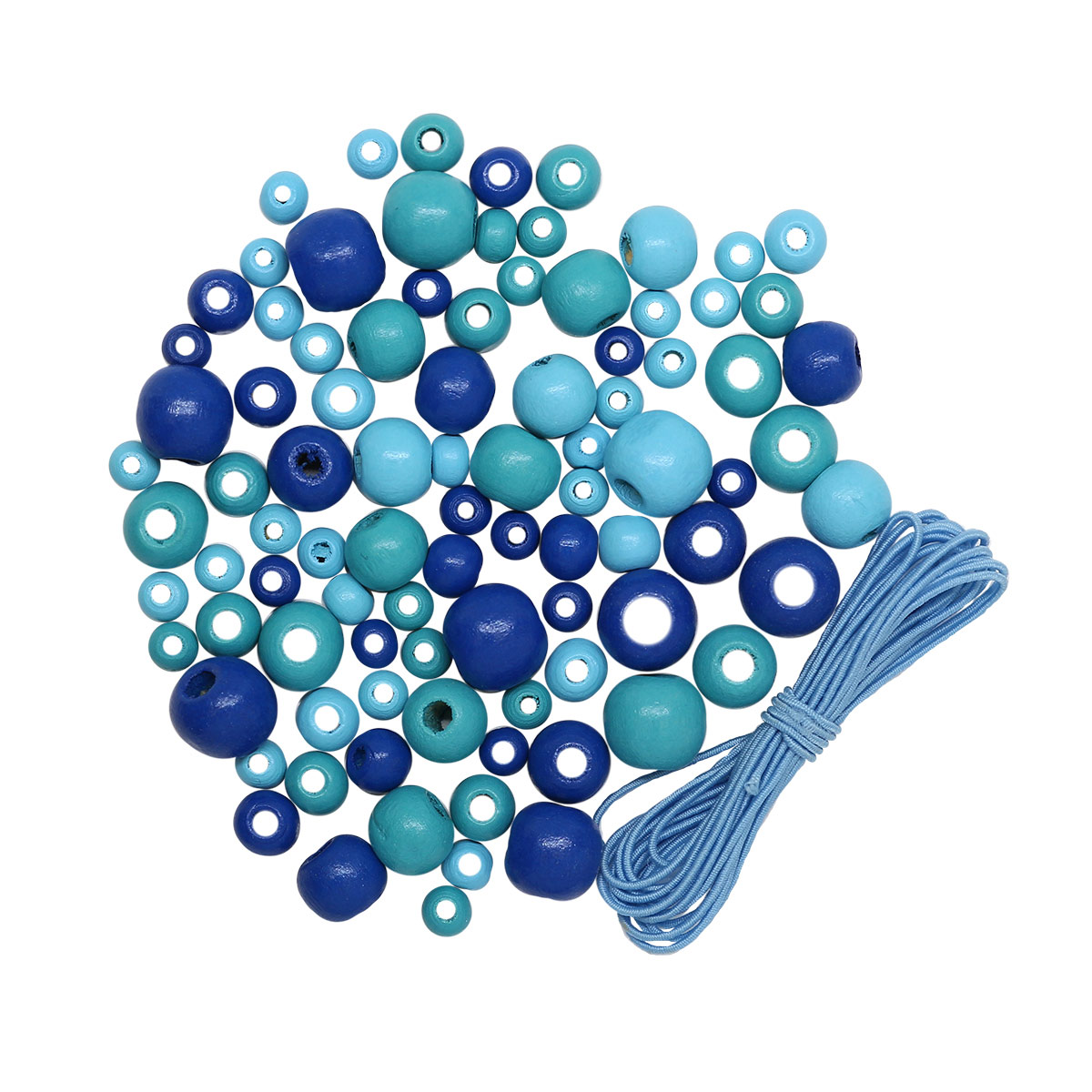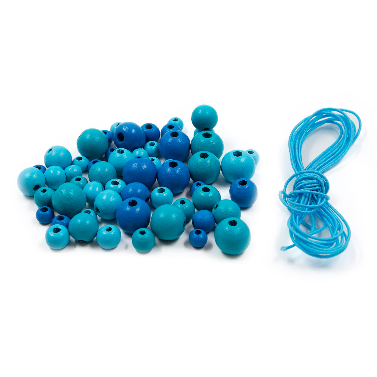 160815 Набор деревянных бусин со шнуром, голубой микс, 6,8,10,12мм, 21гр, 90шт/упак, Astra&Craft