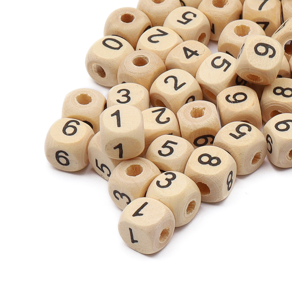 Бусины деревянные, с цифрами, неокрашеные, куб, 10*10мм, 15гр, 96шт/упак, Astra&Craft