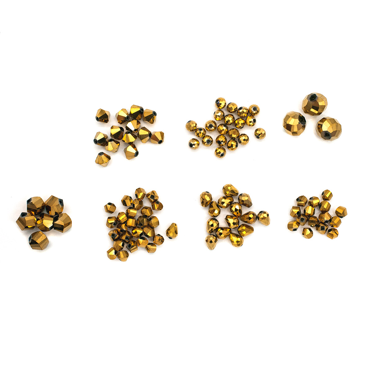 Бусины имеют разную огранку, но один и тот же цвет – золотой. Это оригинальное решение для ваших творческих проектов. Стеклянные бусины длительно сохраняют яркость и блеск.