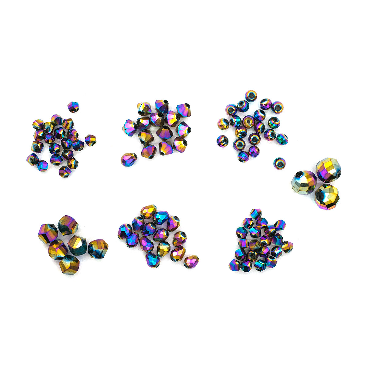 Бусины имеют разную огранку, но один и тот же оттенок с радужным покрытием. Это оригинальное решение для ваших творческих проектов. Стеклянные бусины длительно сохраняют яркость и блеск.