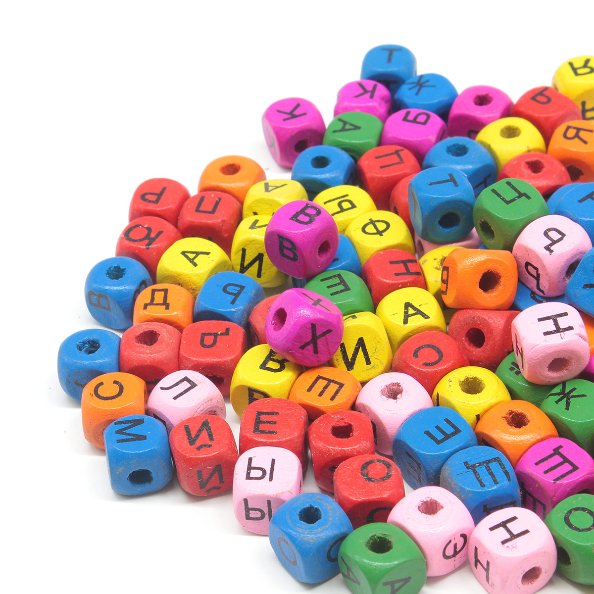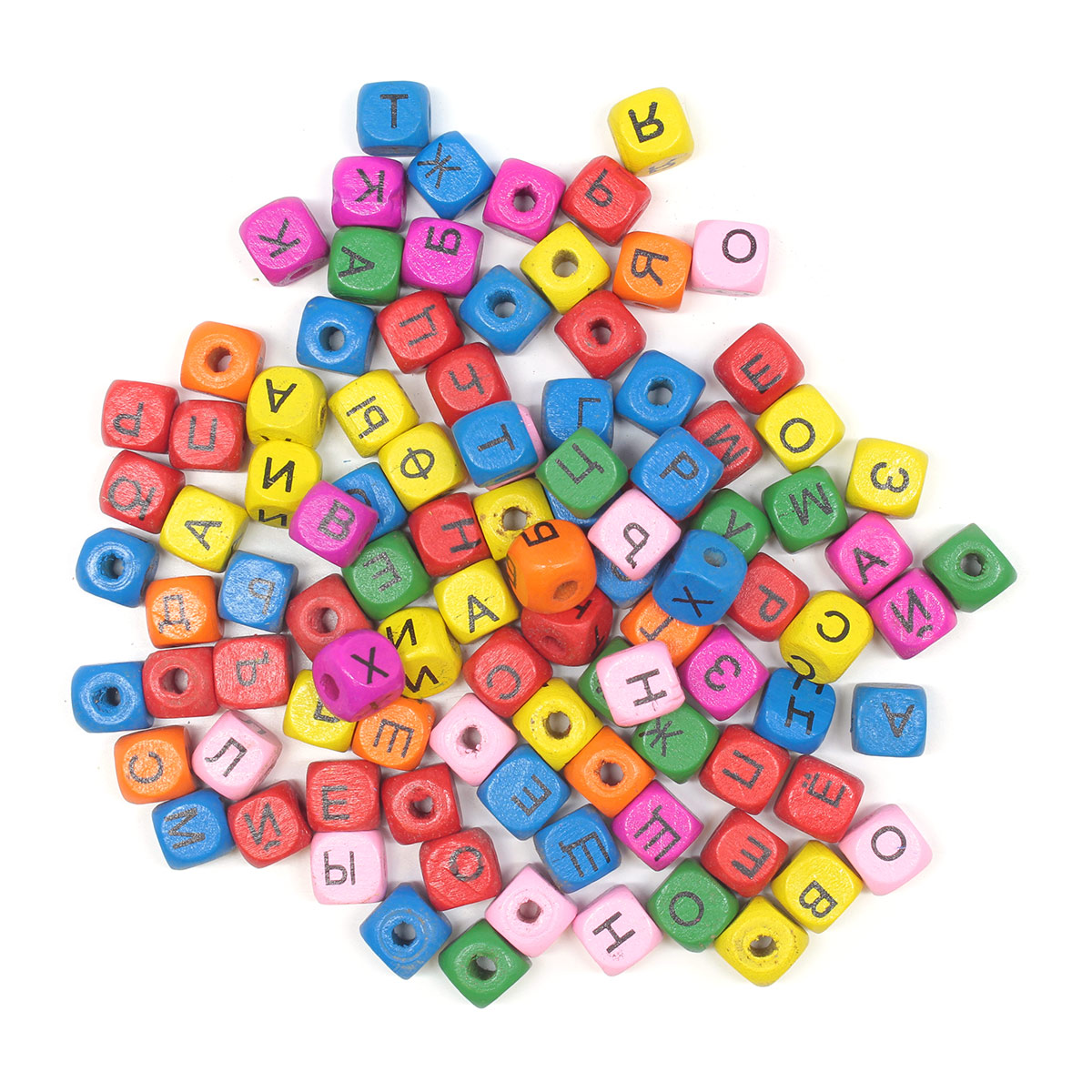 Бусины деревянные, с буквами Рус. алфавит, цвет. микс, куб, 10*10мм, 53гр, 100шт/упак, Astra&Craft