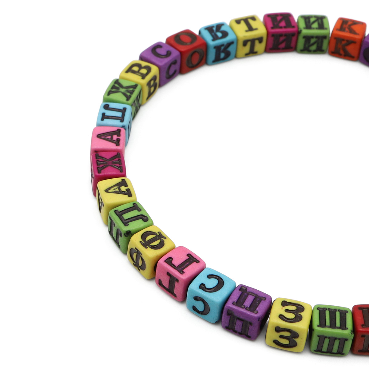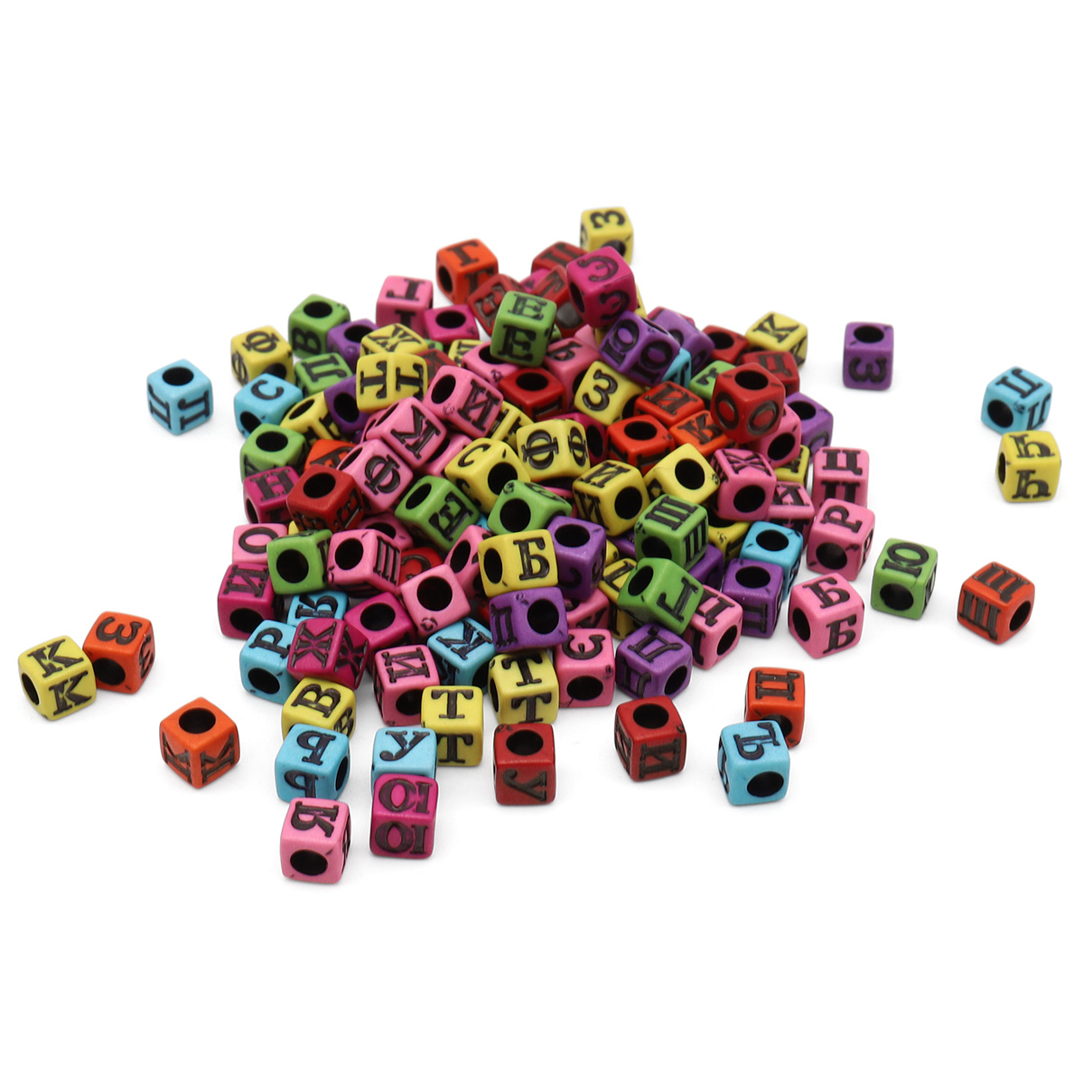 Бусины пластиковые, Рус. алфавит, микс цвета, куб, 6*6мм, 150шт/упак, Astra&Craft