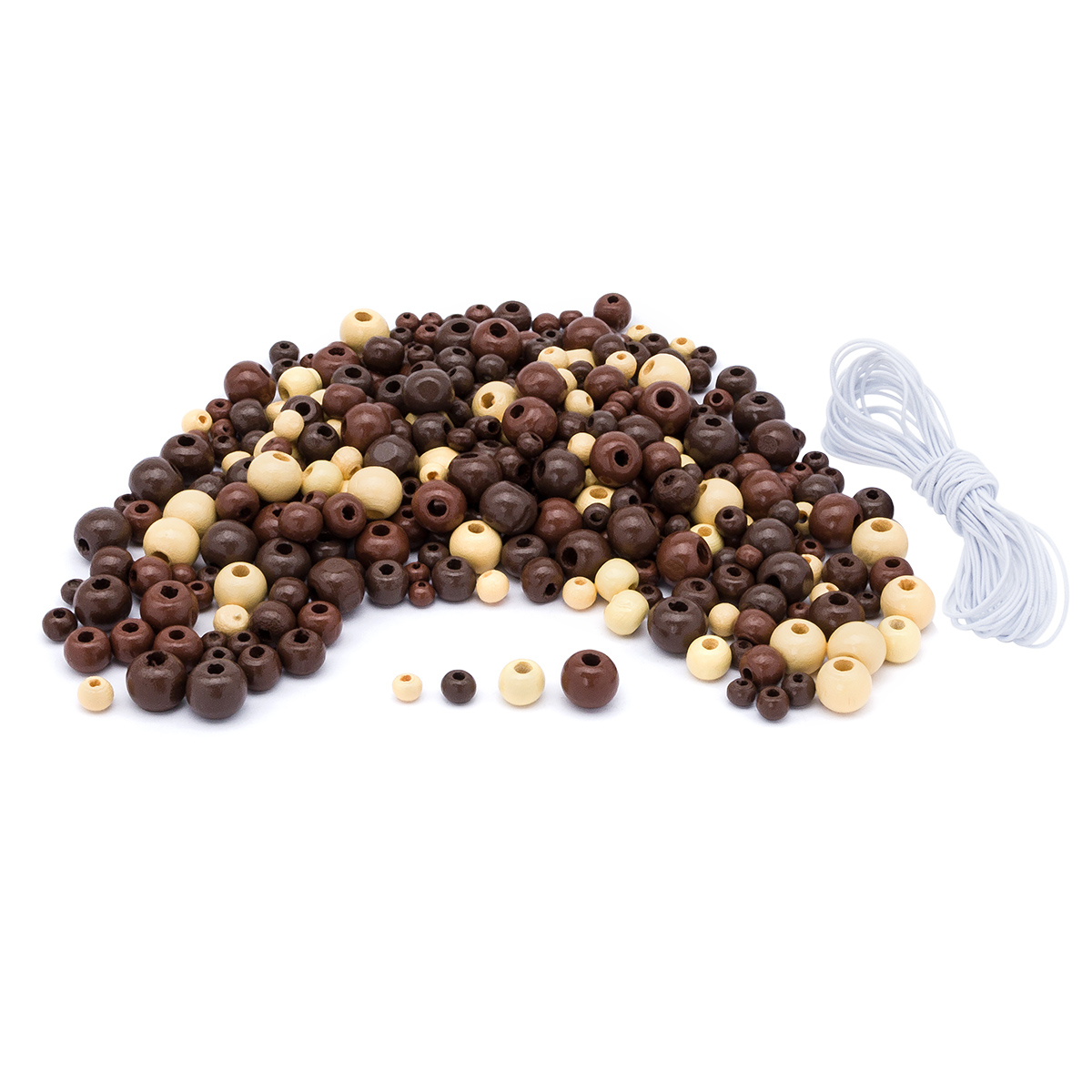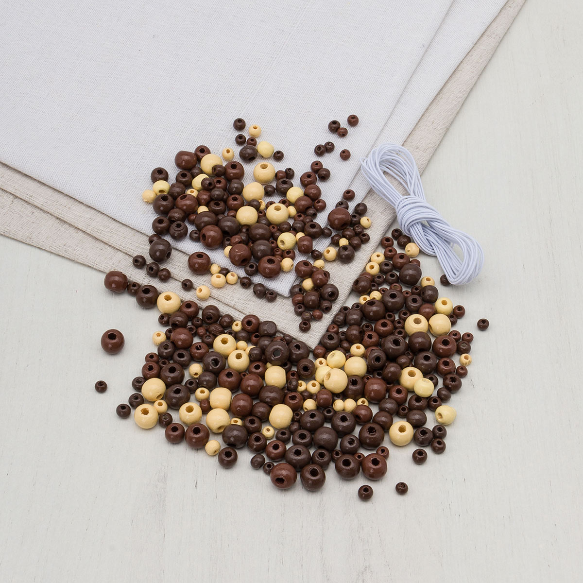 Набор деревянных бусин со шнуром, натуральный микс, 4,6,8,10мм, 50гр, Astra&Craft