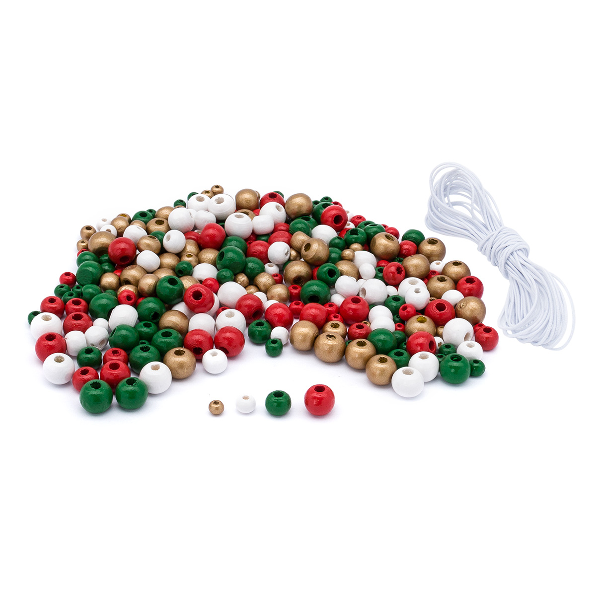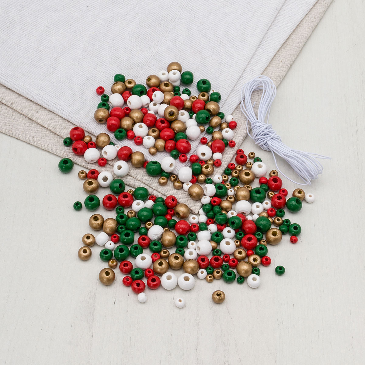 Набор деревянных бусин со шнуром, праздничный микс, 4,6,8,10мм, 50гр, Astra&Craft