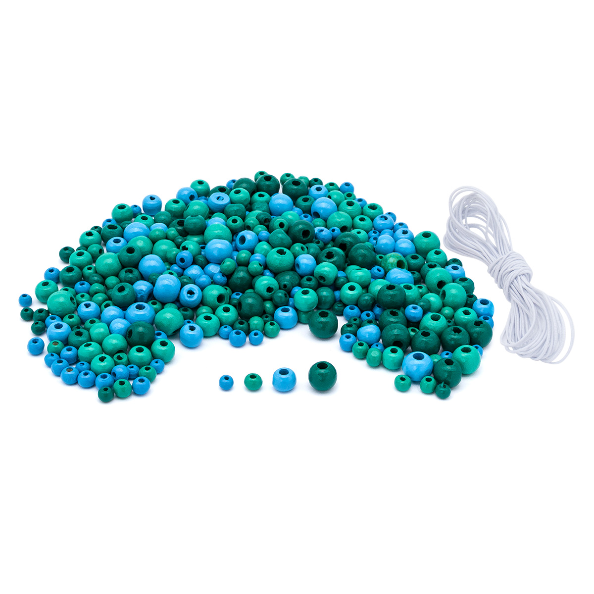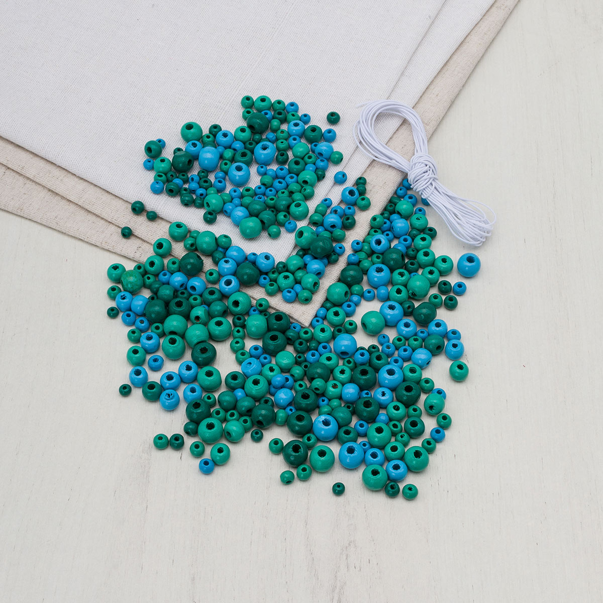 Набор деревянных бусин со шнуром, бирюзовый микс, 4,6,8,10мм, 50гр, Astra&Craft