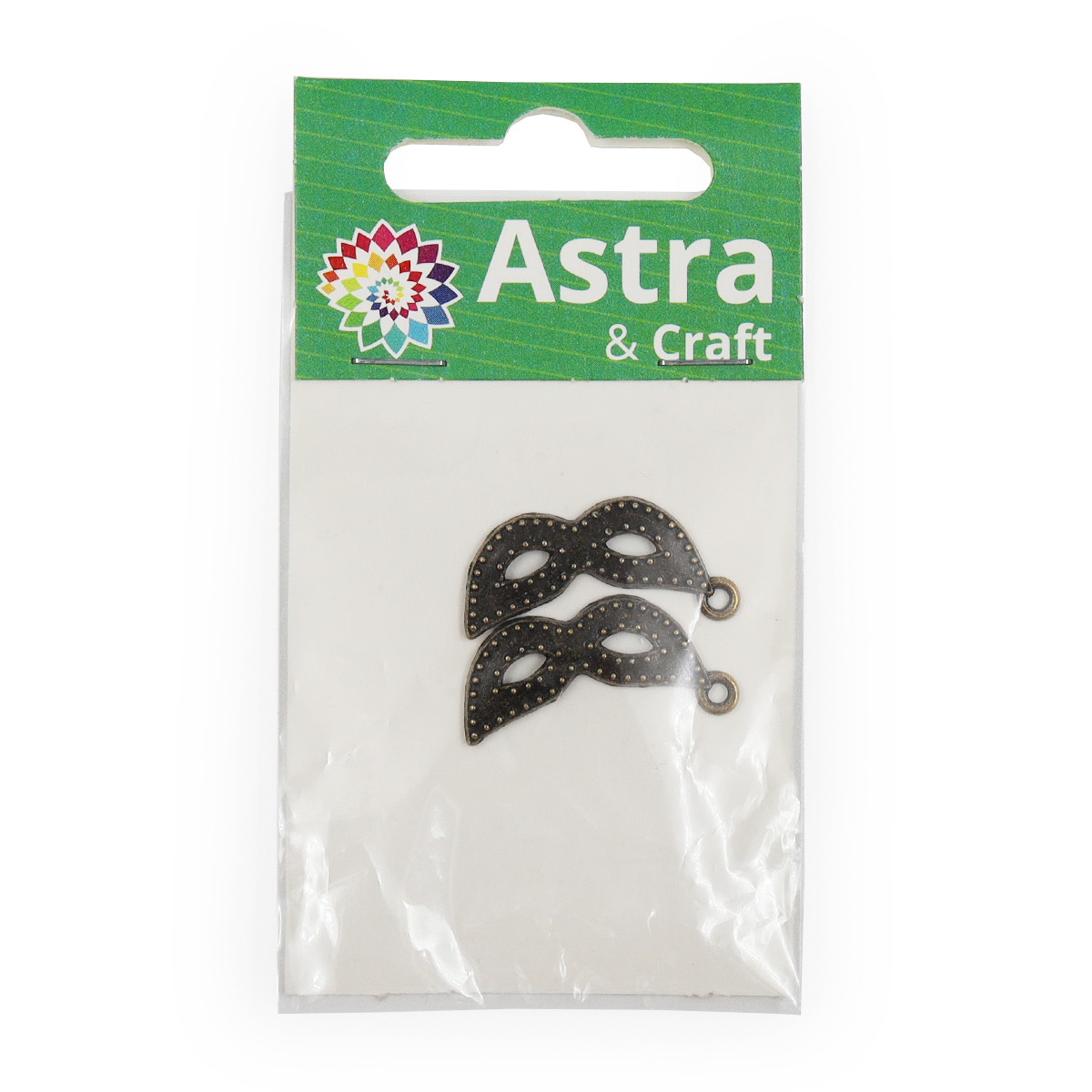 4AR066 Подвеска металлическая карнавальная маска,2шт/упак, Astra&Craft
