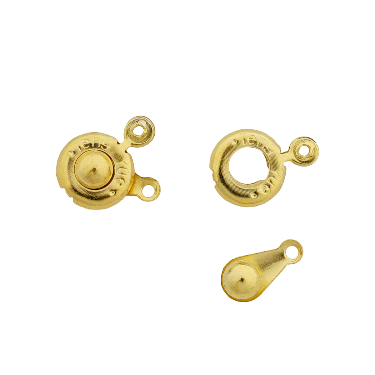 Замок-кнопка для бижутерии изготовлен из прочного металлического сплава, который обладает высокой устойчивостью к износу. Материал сохраняет свой первоначальный цвет даже при длительном контакте с кожей, не вызывая раздражения.