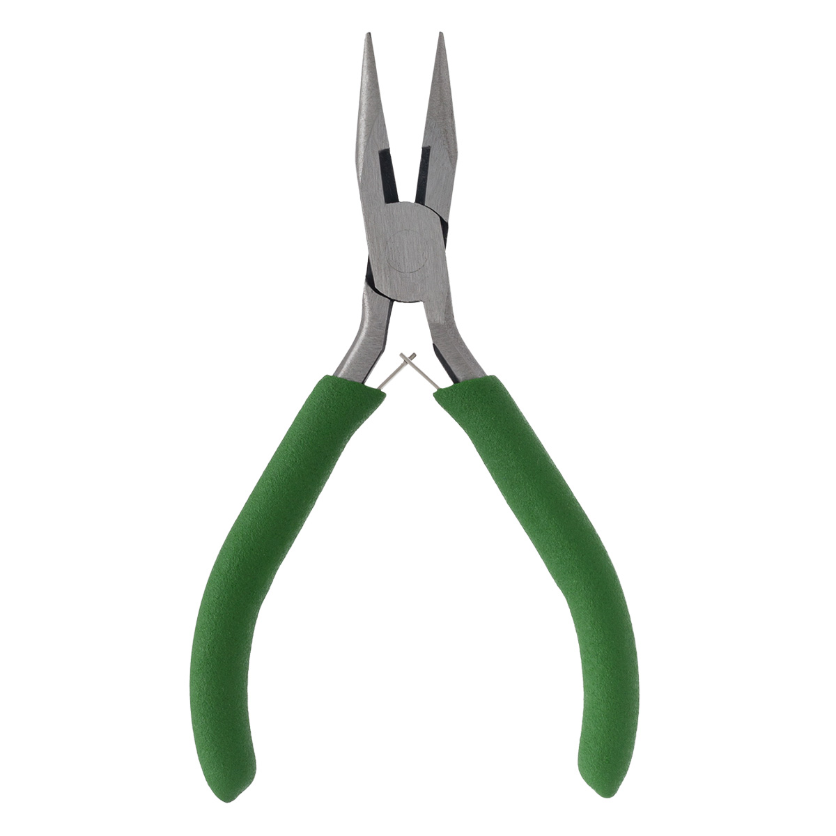 Короткие тонкогубцы без насечек позволяют придерживать элементы украшений при сборке, сгибать штифты и проволоку, раскрывать ювелирные колечки, а также зажимать бусины-кримпы при отсутствии специального инструмента. Подходят для бытовых нужд.