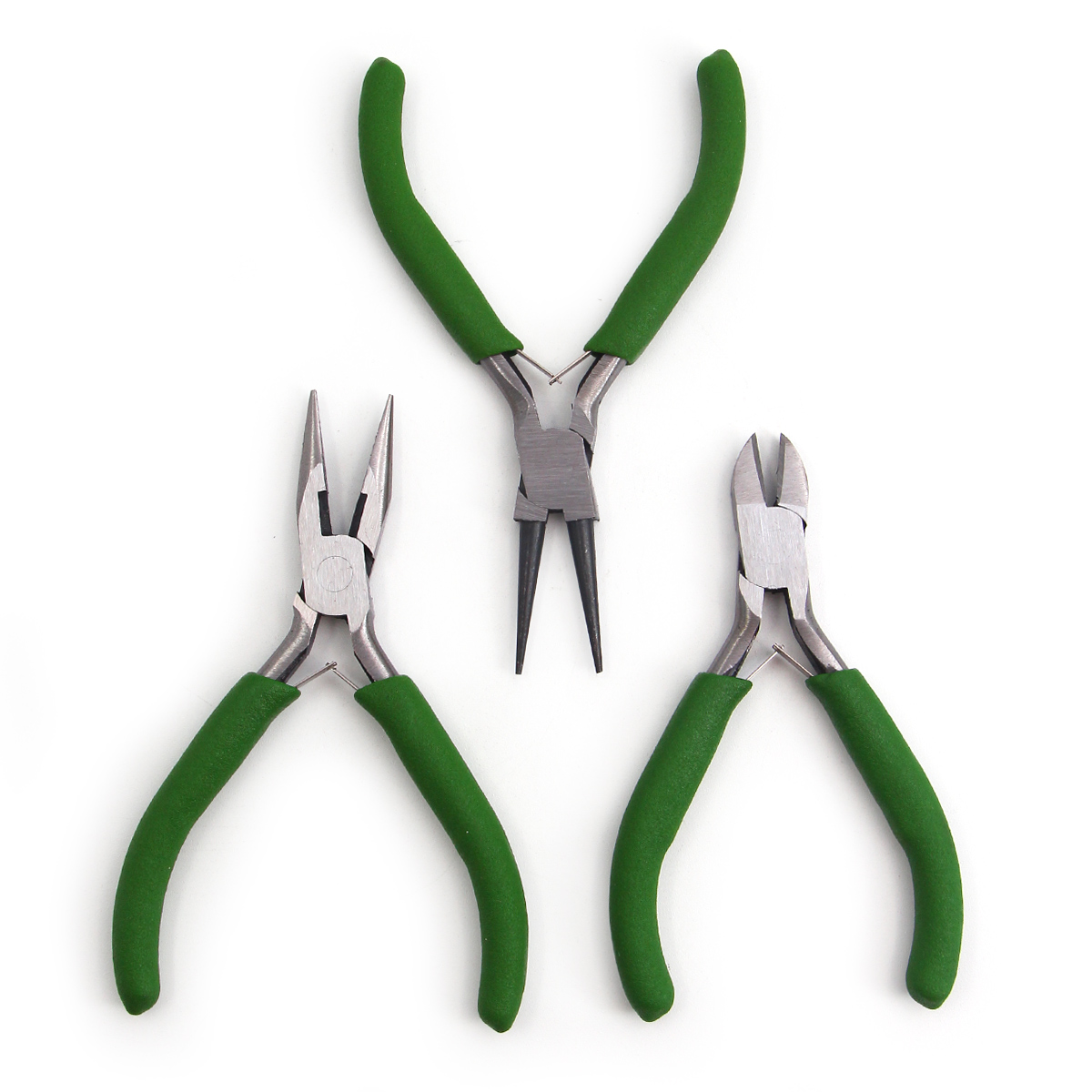 В наборе: бокорезы, тонкогубцы короткие и круглогубцы.