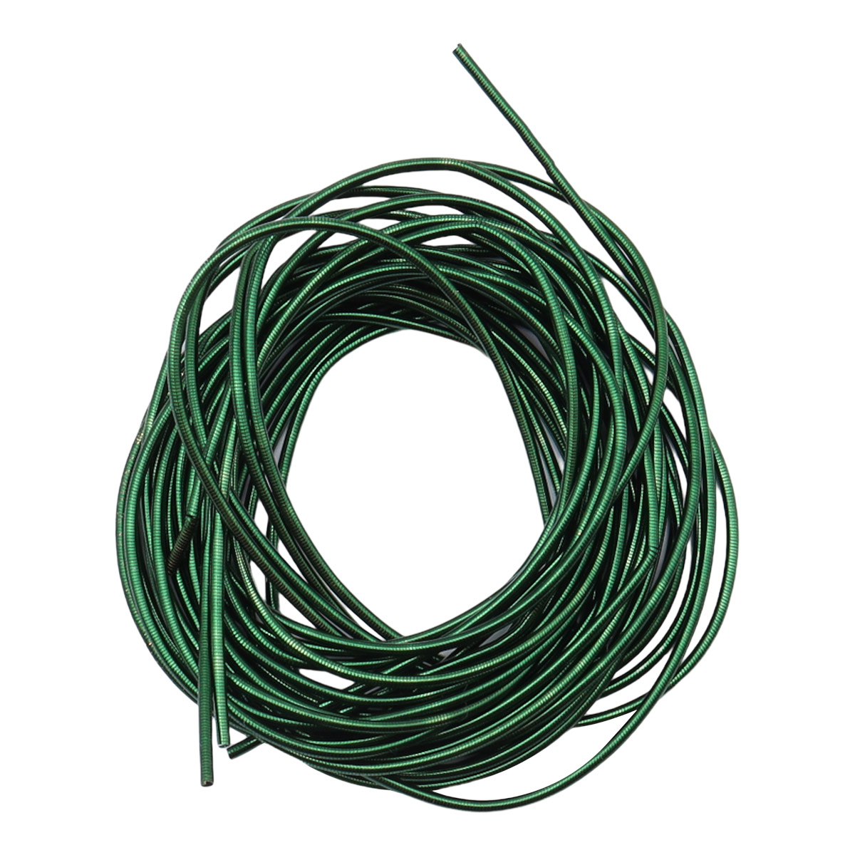 Гладкая канитель – проволока, закрученная в тонкую спираль (толщина – 1 мм). Используется для вышивания (золотного шитья), изготовления авторской бижутерии (брошей, заколок и др.). Этим материалом украшают исторические костюмы и костюмы для выступлений, вышитые иконы, торжественные облачения. Канитель выгодно сочетается с бисером, стразами, жемчугом, бусинами, металлизированными нитями. Для вышивки рекомендуется использовать плотную ткань. Цвет материала – зеленый. В упаковке 5 г. Длина 325 см.