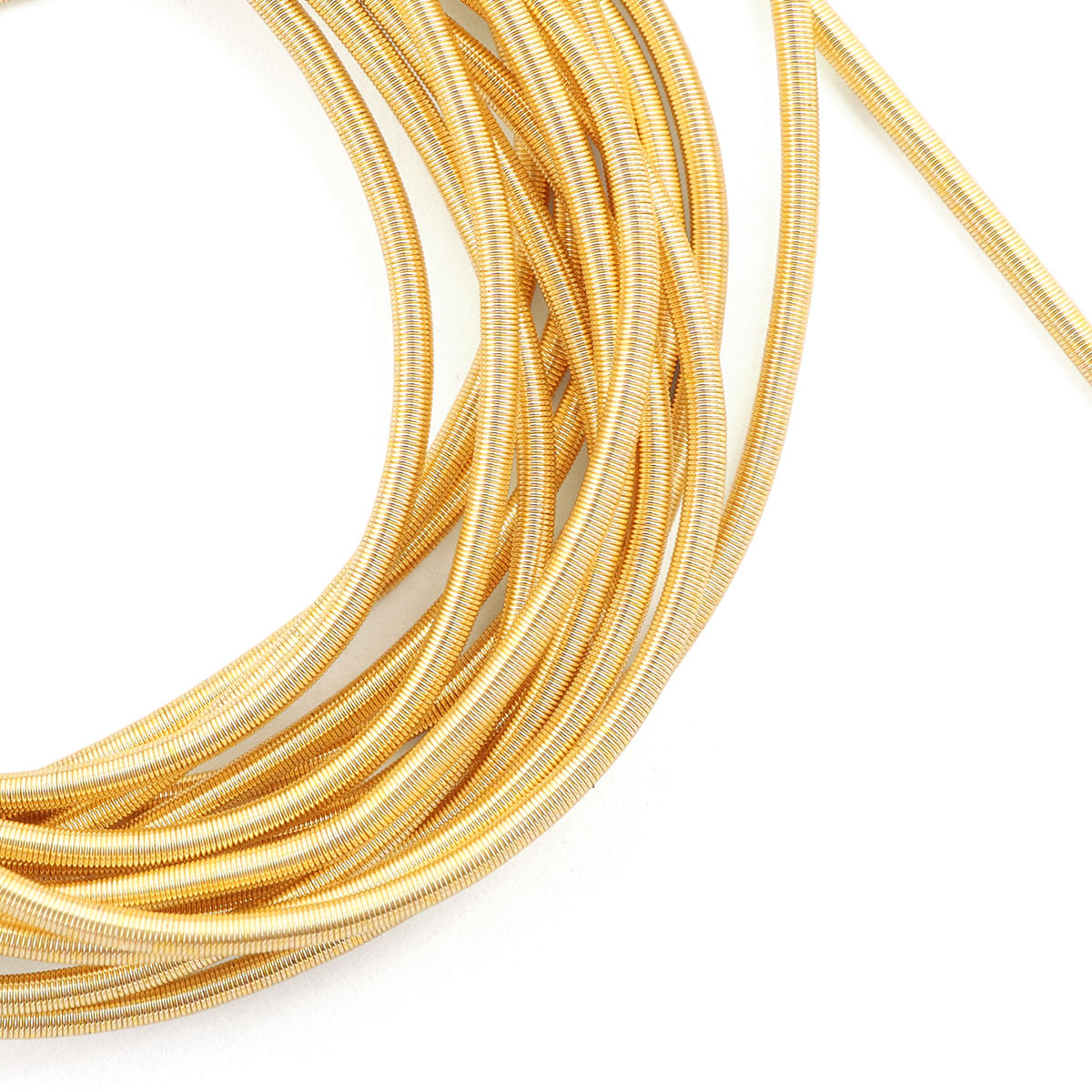 Гладкая канитель – проволока, закрученная в тонкую спираль (толщина – 1 мм). Используется для вышивания (золотного шитья), изготовления авторской бижутерии (брошей, заколок и др.). Этим материалом украшают исторические костюмы и костюмы для выступлений, вышитые оклады для икон, торжественные облачения. Канитель выгодно сочетается с бисером, стразами и самоцветами, жемчугом, бусинами, металлизированными нитями. Для вышивки рекомендуется использовать плотную ткань. Цвет материала – золото с матовым эффектом. В упаковке 5 г. Длина 325 см.