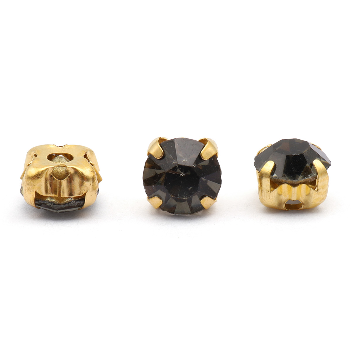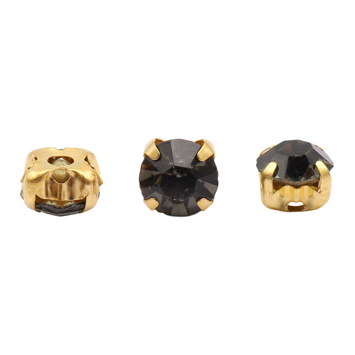 Золотистые цапы служат оправой: они закрывают стразы с обратной стороны, слегка обрамляют их снаружи и придают граненому камню дополнительное сияние.