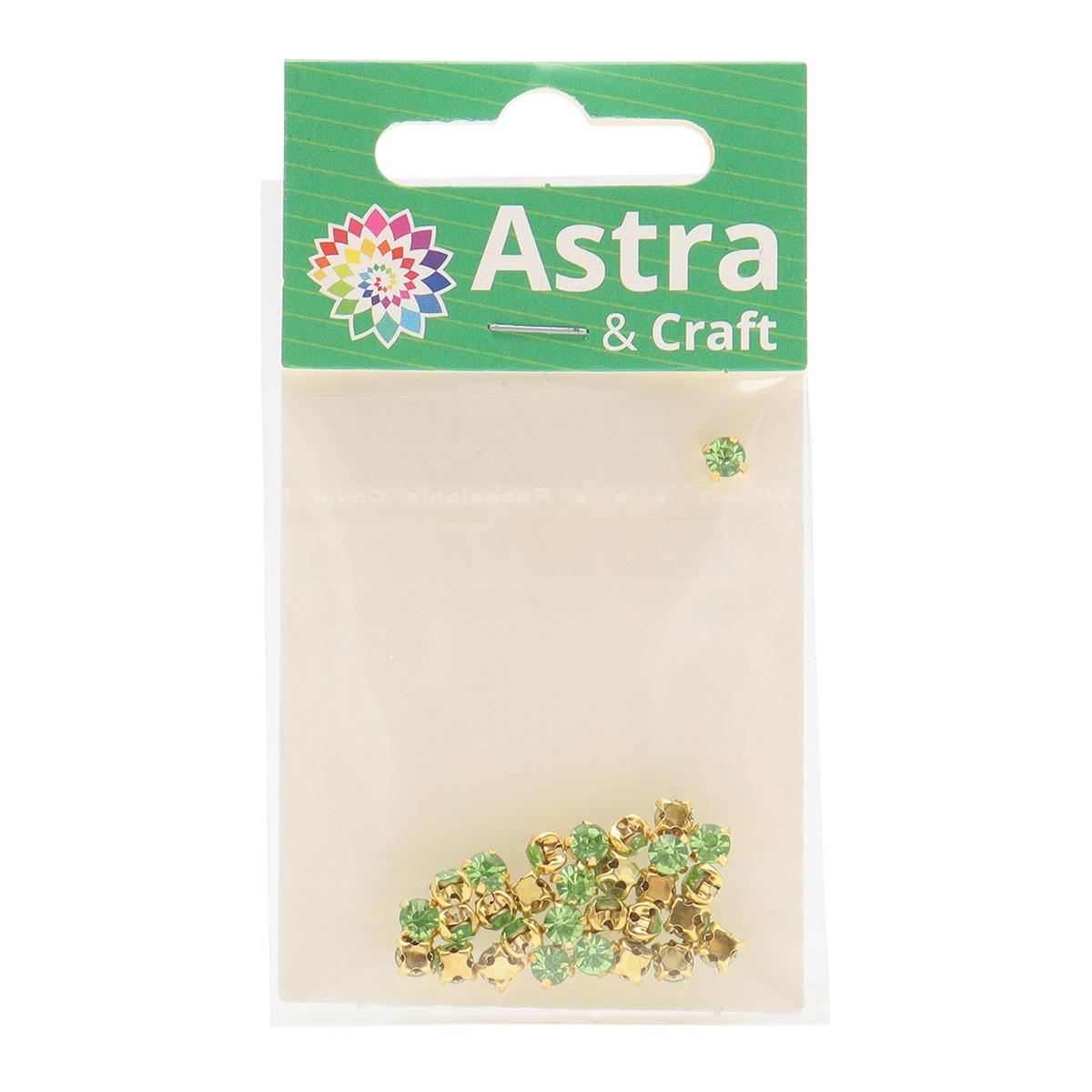 ЗЦ015НН44 Хрустальные стразы в цапах круглые (золото) зеленый 4*4мм, 29-30шт/упак Astra&Craft