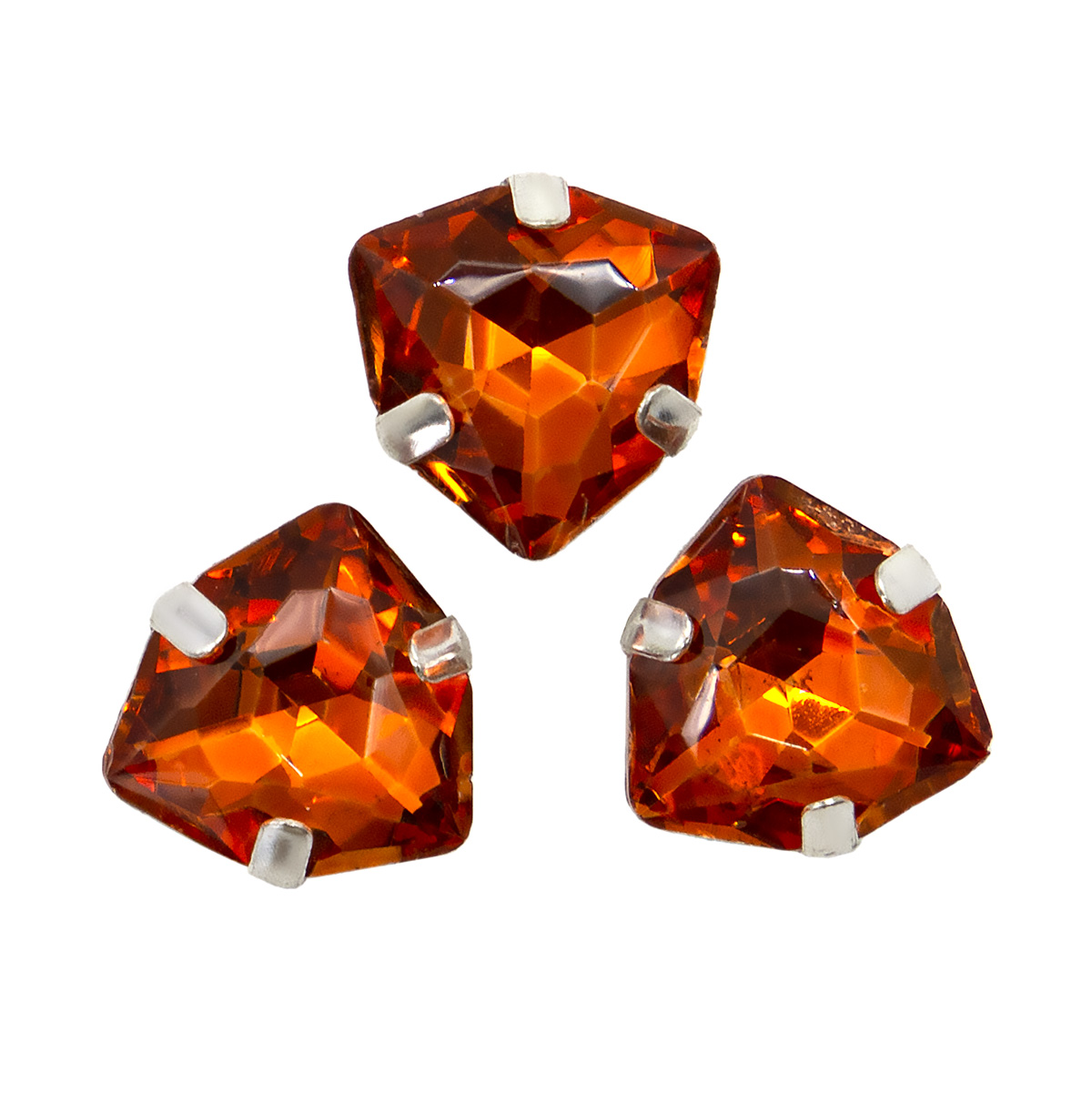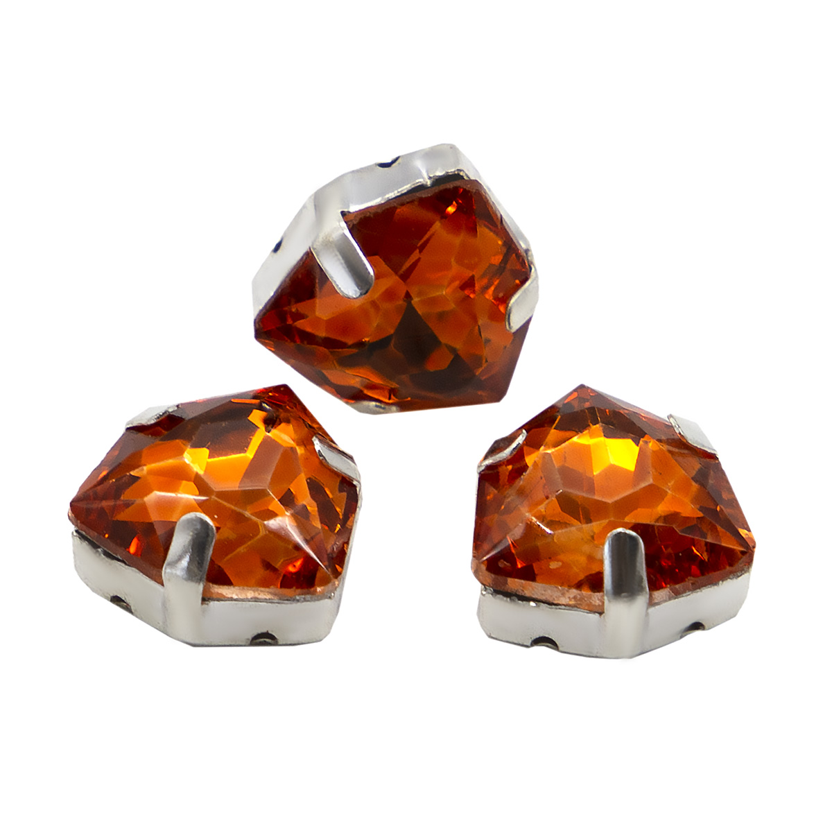 ТЦ002НН12 Хрустальные стразы в цапах треугольные (серебро) ярко-рыжий 12мм, 3шт/упак Astra&Craft
