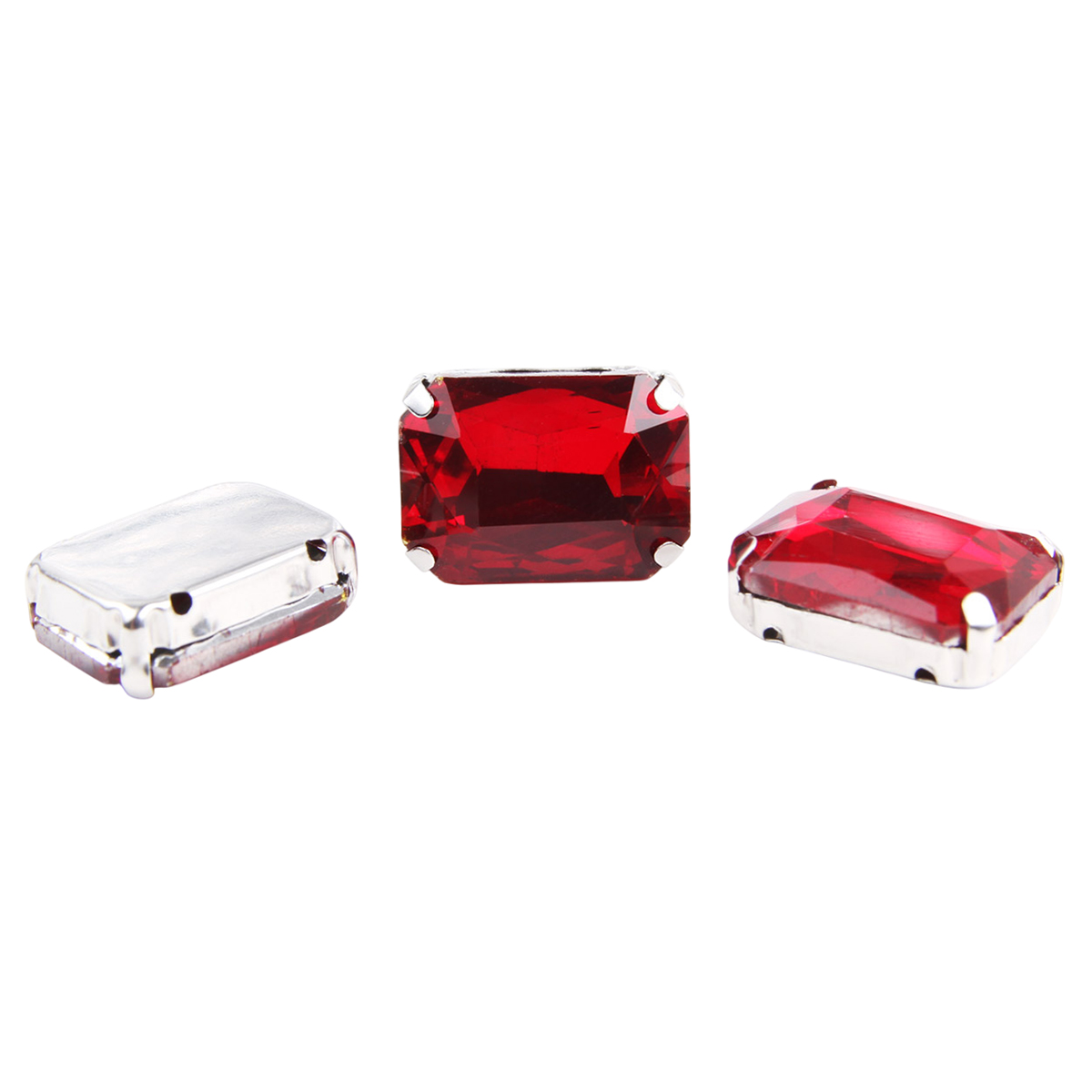 ПЦ003НН1318 Хрустальные стразы в цапах прямоугольные (серебро) красный 13*18мм, 3шт/упак Astra&Craft
