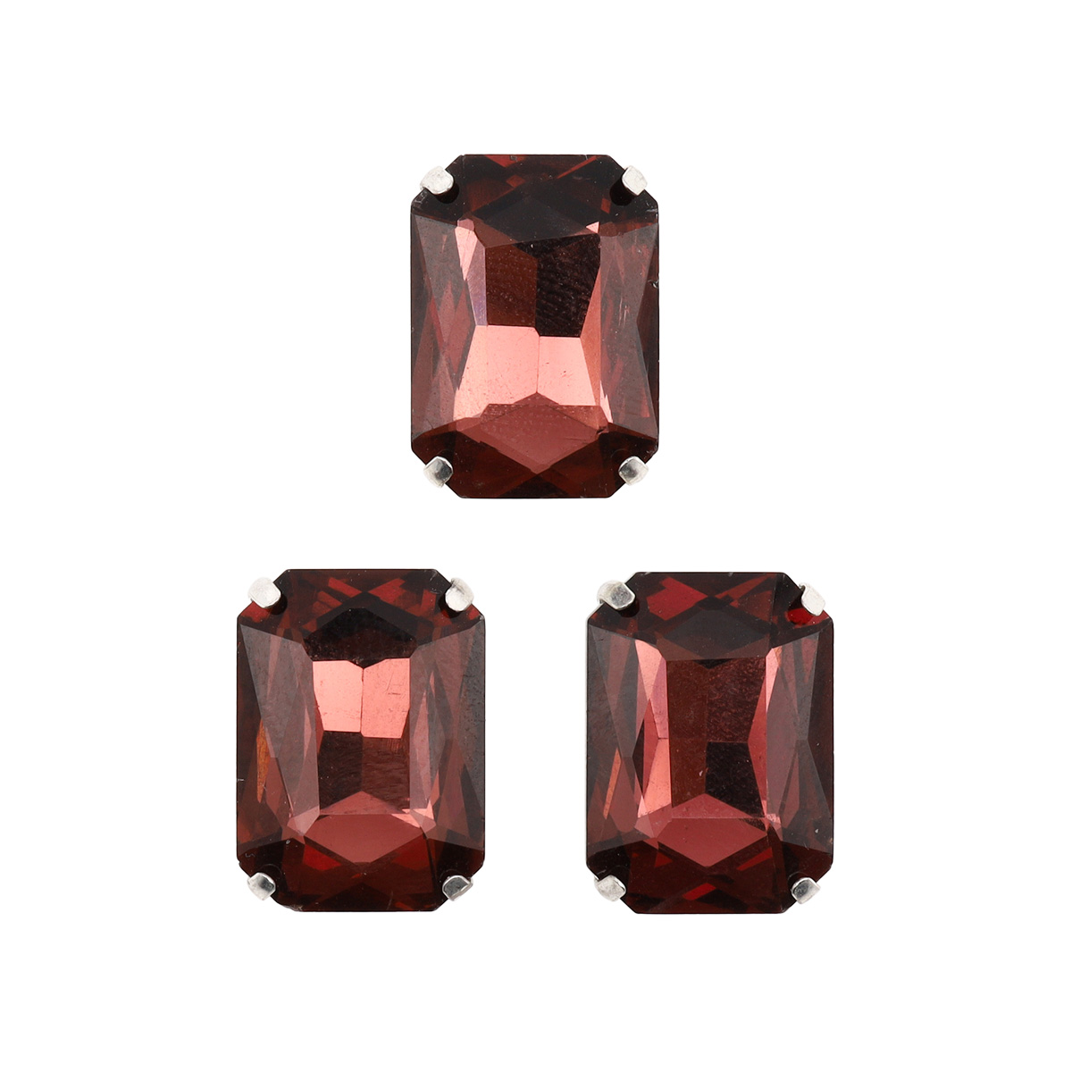 ПЦ004НН1318 Хрустальные стразы в цапах прямоугольные (серебро) бургунди 13*18мм, 3шт/упак Astra&Craft