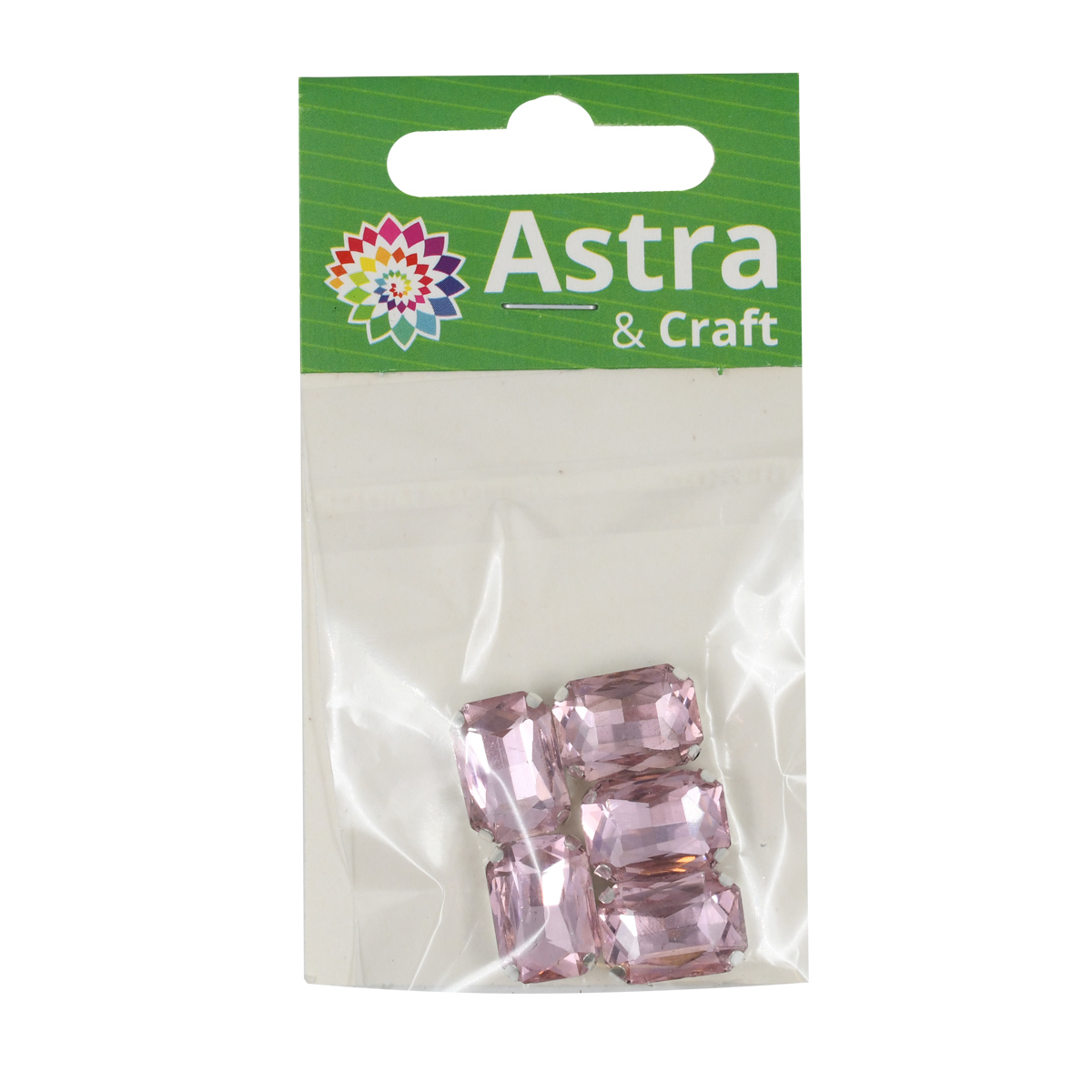 ПЦ005НН1014 Хрустальные стразы в цапах прямоугольные (серебро) светло-розовый 10*14мм, 5шт/упак Astra&Craft