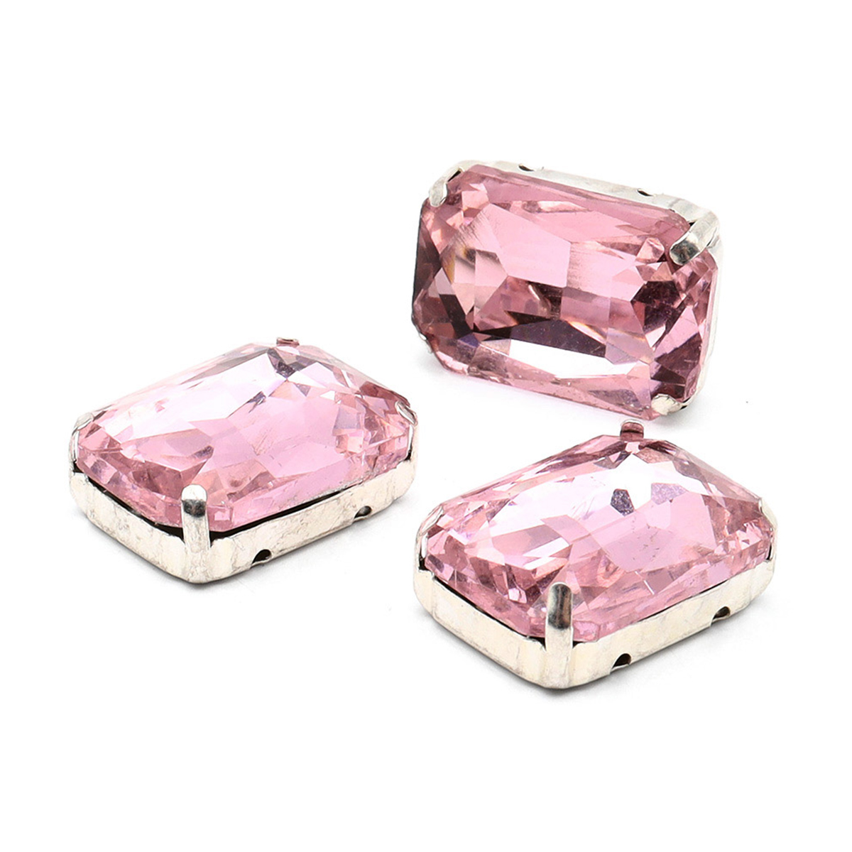 ПЦ005НН1318 Хрустальные стразы в цапах прямоугольные (серебро) светло-розовый 13*18мм, 3шт/упак Astra&Craft